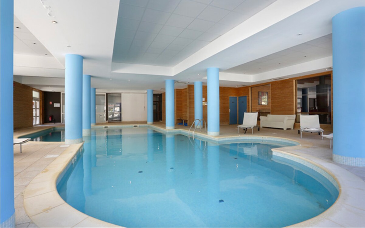 Fools D'Allos síelés a lábánál fűtött medence télen