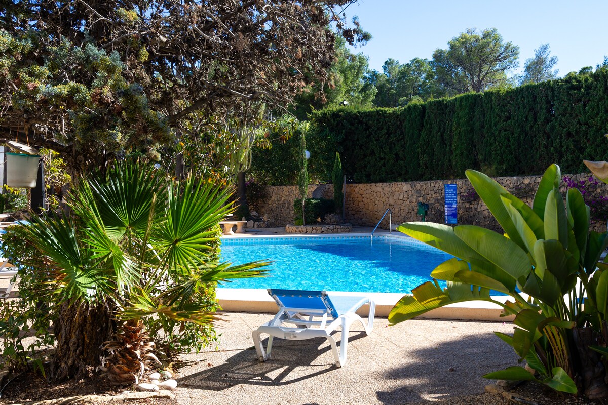 Mennyei lakás egy egyedülálló botanikus kert közepén, trópusi növényekkel, pálmafákkal és gyümölcsfákkal. A vendégek élvezhetik a nagy fűtött medencét, a medenceházat és a grillezőhelyet. A házat az 1960-as években egy jól ismert építész építette ibizai stílusban. A lakás 2 kétszemélyes hálószobával és egy nyitott nappalival rendelkezik, amelyhez konyha tartozik. A lakásnak saját kijárata van a kertbe és a teraszra.