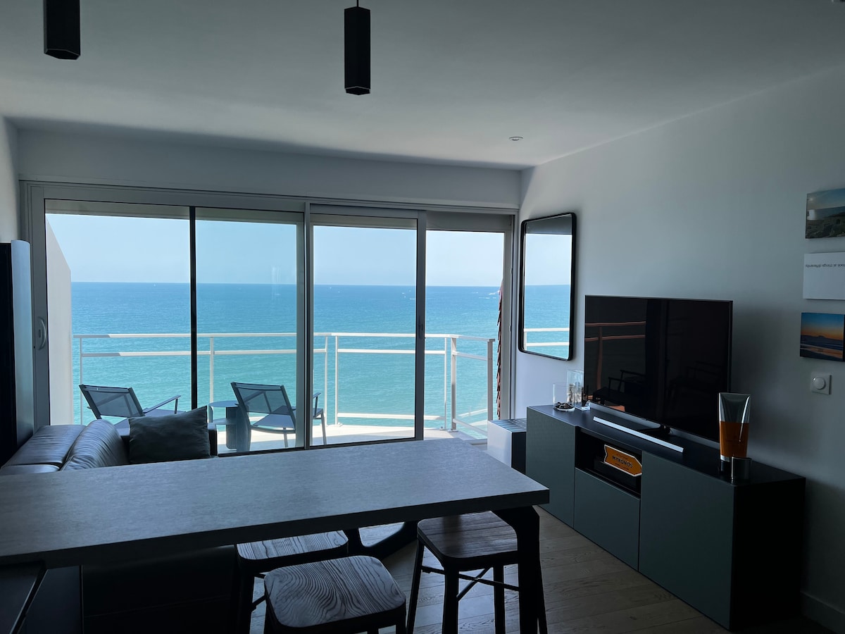 Cet appartement offre une vue exceptionnelle et unique sur l’océan, le phare de Biarritz , le golf et les montagnes Complètement rénové en 2022, il offre deux chambres, deux balcons, une place de parking privée et gratuite. Au dernier étage vous serez coupés du monde avec comme seul bruit les oiseaux et les vagues. Détendez-vous dans ce logement unique sous le ciel.