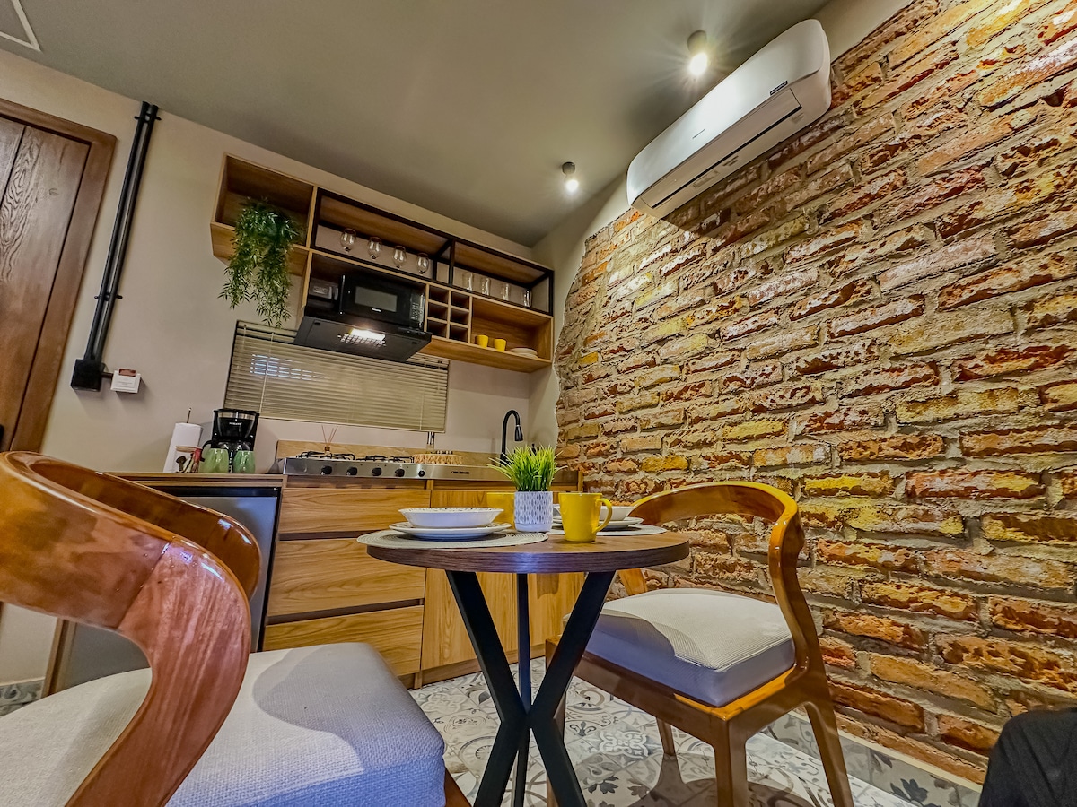 Bienvenido a este moderno y cómodo apartaestudio, perfecto para viajeros, parejas o personas en viaje de negocios. Ubicado en una zona tranquila y segura, cuenta con cama doble, baño privado, cocina equipada, WiFi de alta velocidad y TV. Tendrás todo lo necesario para sentirte como en casa. Muy cerca encontrarás restaurantes, supermercados, transporte público y atractivos turísticos. ¡Disfruta de una estadía placentera y sin complicaciones!