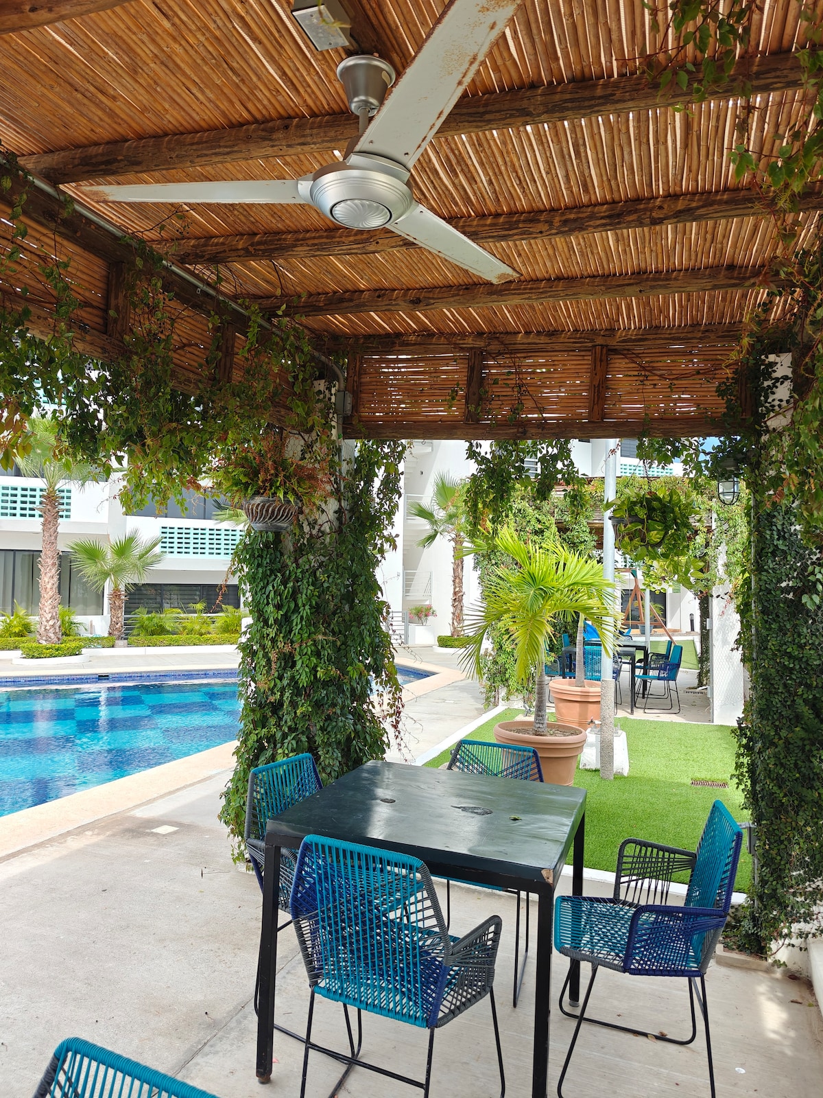 Pihenj az egész családdal ebben az otthonban, ahol a nyugalom lélegző. Gyönyörű naplementék, élvezd a kényelmi szolgáltatásokat, a medencéket, a grilleket, a gyermekjátékokat, a minigolfot, a 24 órás megfigyelést és az ellenőrzött hozzáférést. „A lakás egy második emeleten van, lift nélkül” „Kevés tömegközlekedés a környéken, autóval történő érkezés ajánlott” „Az apartman 6 fő számára ideális, de több személy számára is előkészíthető” „A medence területén háziállatok nem engedélyezettek”