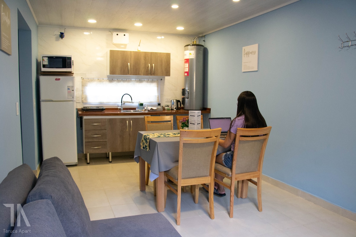 Apartman 2 tágas szobával, (1 hálószoba) franciaággyal. A nappaliban van egy kanapéágy, amely két egyszemélyes ággyá alakítható, nagyon hangulatos, világos, csendes, nagyon jól felszerelt, minden, amire szükséged van, és még több, amitől a vendégek nagyon kényelmesen érzik magukat. A víz biztonságos az iváshoz . Haedo belvárosában található😊. .