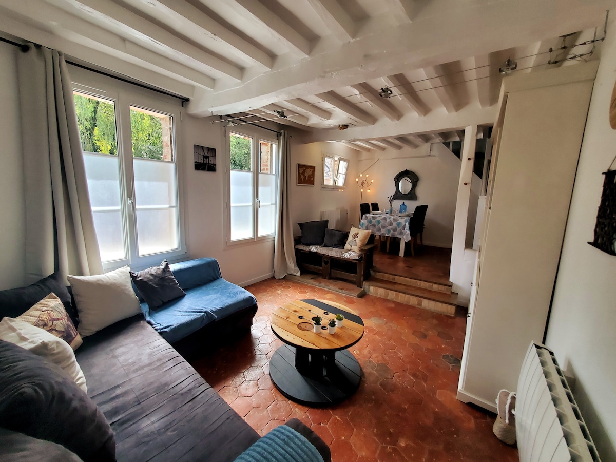 Petite maison de plain-pied, au cœur de Bresles. Possibilité de garer des véhicules dans la cour . Une chambre avec un lit deux personnes 140, plus un canapé qui se tranforme en véritable lit 140 dans le salon . Attention , pour la préparation du second lit il faudra ajouter 5 e si vous avez réservé pour 2 voyageurs . Possibilité de profiter des extérieurs. Proche de tous commerces . A 15 minutes de l'aéroport de Tillé Beauvais , 1h de Paris et à 5 min de la trans Oise.