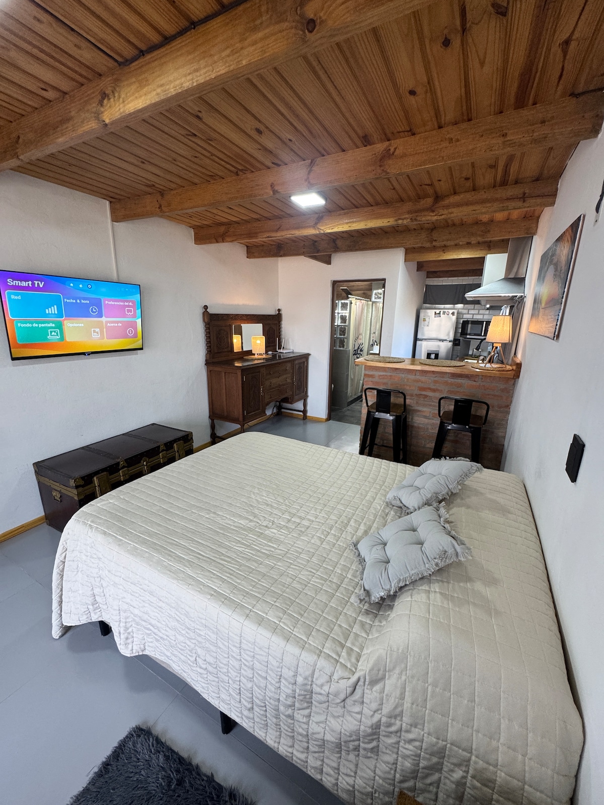 Amellett, hogy 4-es számú lakásbérlési komplexumunk, a Casa del Mar. Földszint, nagyon jó felszereltség, szuper kényelmes, és hihetetlen kilátás nyílik innen a tengerpartra, az Anaconda városrészre. Nappali / étkező kétszemélyes ággyal, teakonyhával, terasszal, saját „parrillával” az asado, a fürdőszoba és a kétágyas hálószoba elkészítéséhez. Parkolás. Nagy közös terasz, ahol élvezheted, és hihetetlen kilátás nyílik a tengerre.