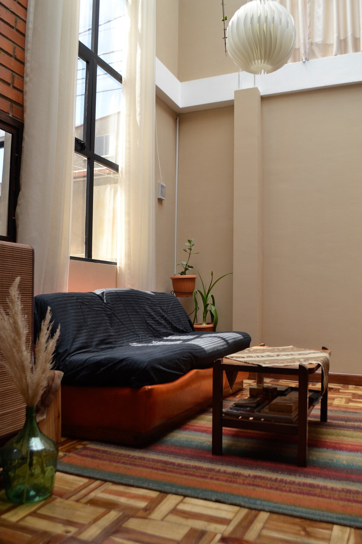 A kiadó helyünket egy 29 m2-es területen újították fel, amely kényelmes és otthonos kis LOFTLAKÁSSÁ vált, nagyon közel van a Teleferico Morado - Esthez. Március 6. (10 perc séta) és El Alto Internacinal repülőtér (15 perc autóval). Sétálj el a vásárokhoz, a bevásárlóközponthoz és a Crossing Viachához.