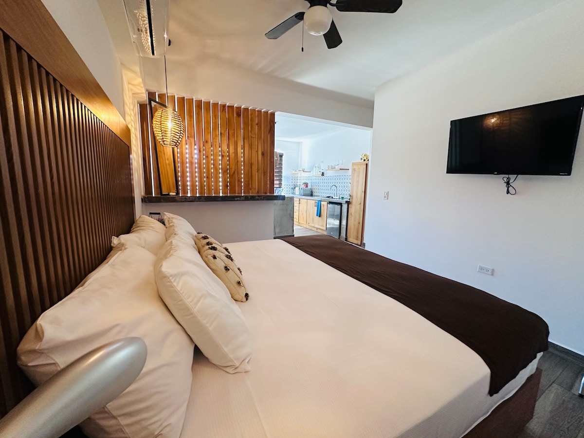 Relax in this peaceful and cozy retreat, just one block from the sea. Perfect for enjoying La Paz’s beauty without the city noise, yet close to everything. You’ll love the shared pool, BBQ area, and calm atmosphere—ideal for resting, working, or exploring. Enjoy sunsets by the sea, bike rides, or a quiet evening under the stars. Highlights: 🌴 Shared pool and BBQ area 🐾 Pet friendly 🚗 Private parking with electric gate 🌅 One block from the sea, 10 min to the Malecón 📶 Fast WiFi and workspace