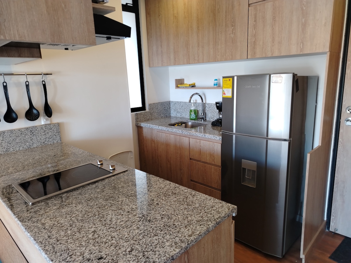 Elbűvölő lakosztály Bgtá szívében, ideális pároknak vagy utazóknak. Elegáns dekoráció, felszerelt konyha és kényelmes kétszemélyes ágy. Saját erkély lélegzetelállító kilátással, közösségi terek, például Lavado Area, edzőterem, biliárdasztal és pingpong, CoWo, grillezőterasz a legfelső szinten 360° -os kilátással és 24 órás biztonság. Közel a piacokhoz, múzeumokhoz, éttermekhez La Macarena, Monserrate, La Candelaria, Mall San Martín és Centro Internacional területén. Fedezd fel Bogotá legjavát ebből a csodálatos lakosztályból!