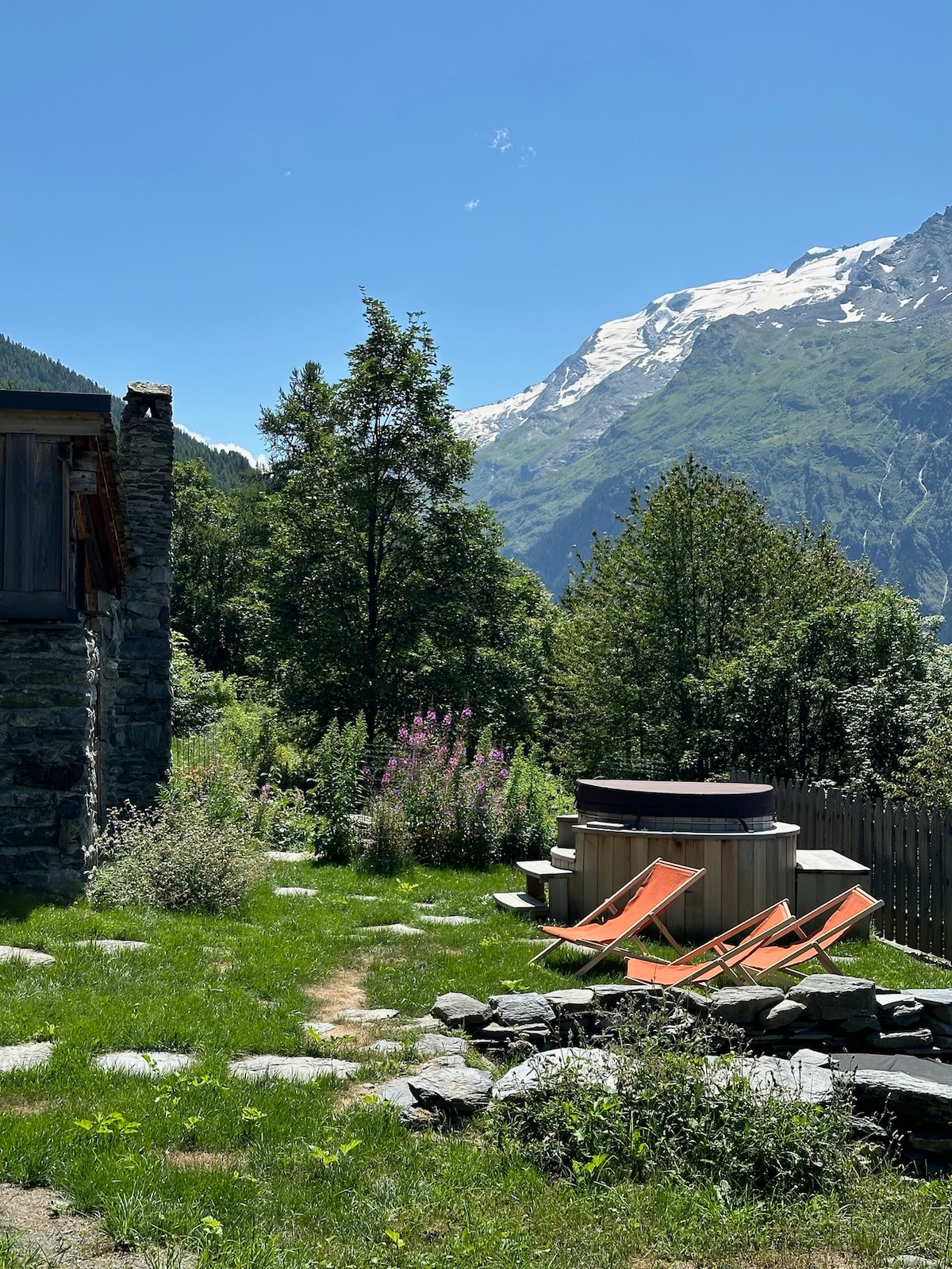 Bienvenue à 𝙇𝙖𝙩𝙞𝙥𝙞𝙆, chalet de charme en hameau alpin, perché en balcon sur la vallée d'Aime et le massif du Beaufortain. Bain nordique privatif chauffé au feu de bois face aux sommets, balcon panoramique, terrasse plein ouest, jardin (8 pers., 4 chambres, espace indépendant). Sentiers rando, trail & VTT depuis le chalet, sur les mythiques 21 virages de La Plagne (Tour de France, 6000D). Familles, cyclistes & trailers : l'authenticité montagne, sans renoncer au confort.