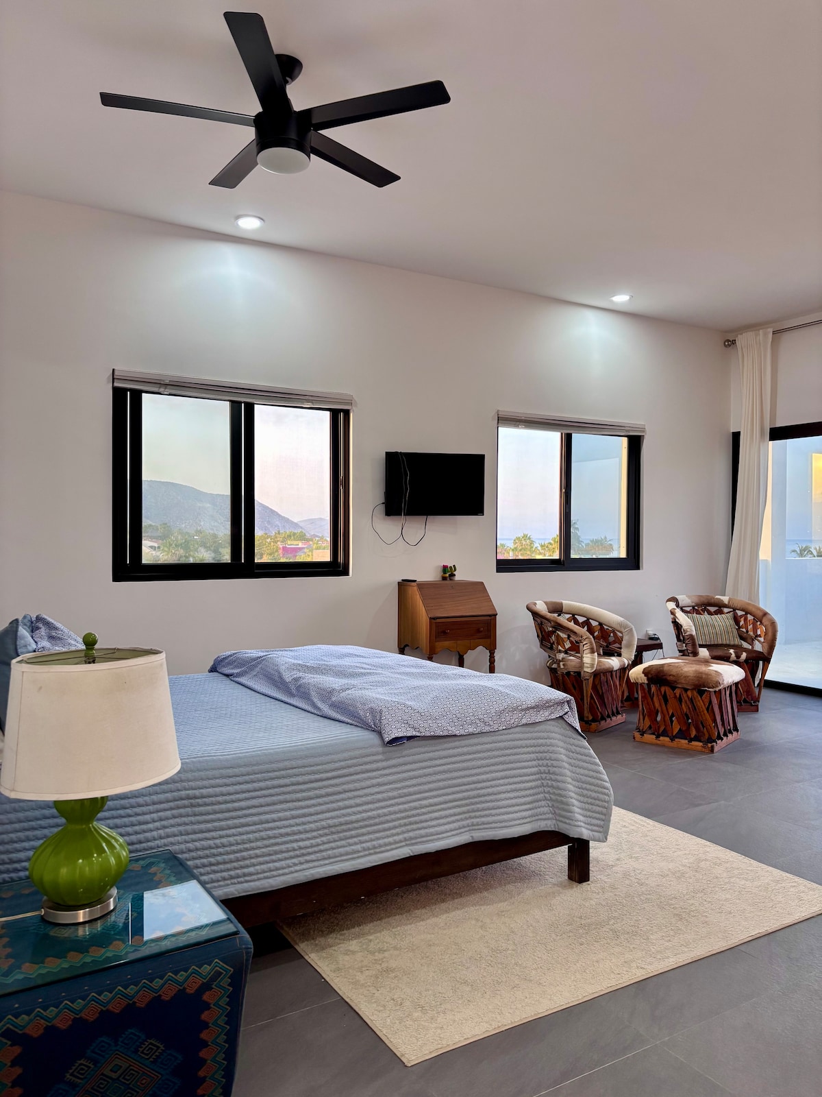 Seaview is perfectly perched above the town of Los Barriles. Its location is unbeatable. Walk to the beach restaurants, shopping, yoga and pickleball ++ Clean and cozy, fully furnished with a king bed. Enjoy views over the Sea of Cortez from your balcony or relax in your private, sunny backyard. This property sits on a quiet cul de sac. Private, safe/central, fully fenced in property.