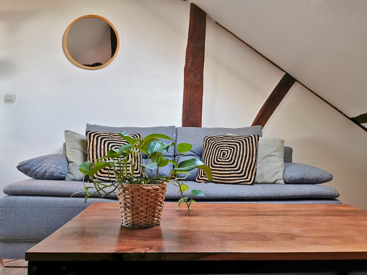 Appartement 2 pièces sous les toits avec poutres apparentes, alliant charme ancien et modernité, situé au 3ᵉ étage (sans ascenseur), proche du centre-ville de Tours. Idéal pour un séjour touristique ou professionnel. 📍À 5min du centre en tramway, 15/20min à pied, 10min en voiture. 🚋 Arrêt de tram juste en bas. 🔐 Arrivée autonome via boîte à clés sécurisée. ⏰ Arrivée à partir de 18h – Départ jusqu’à 11h.