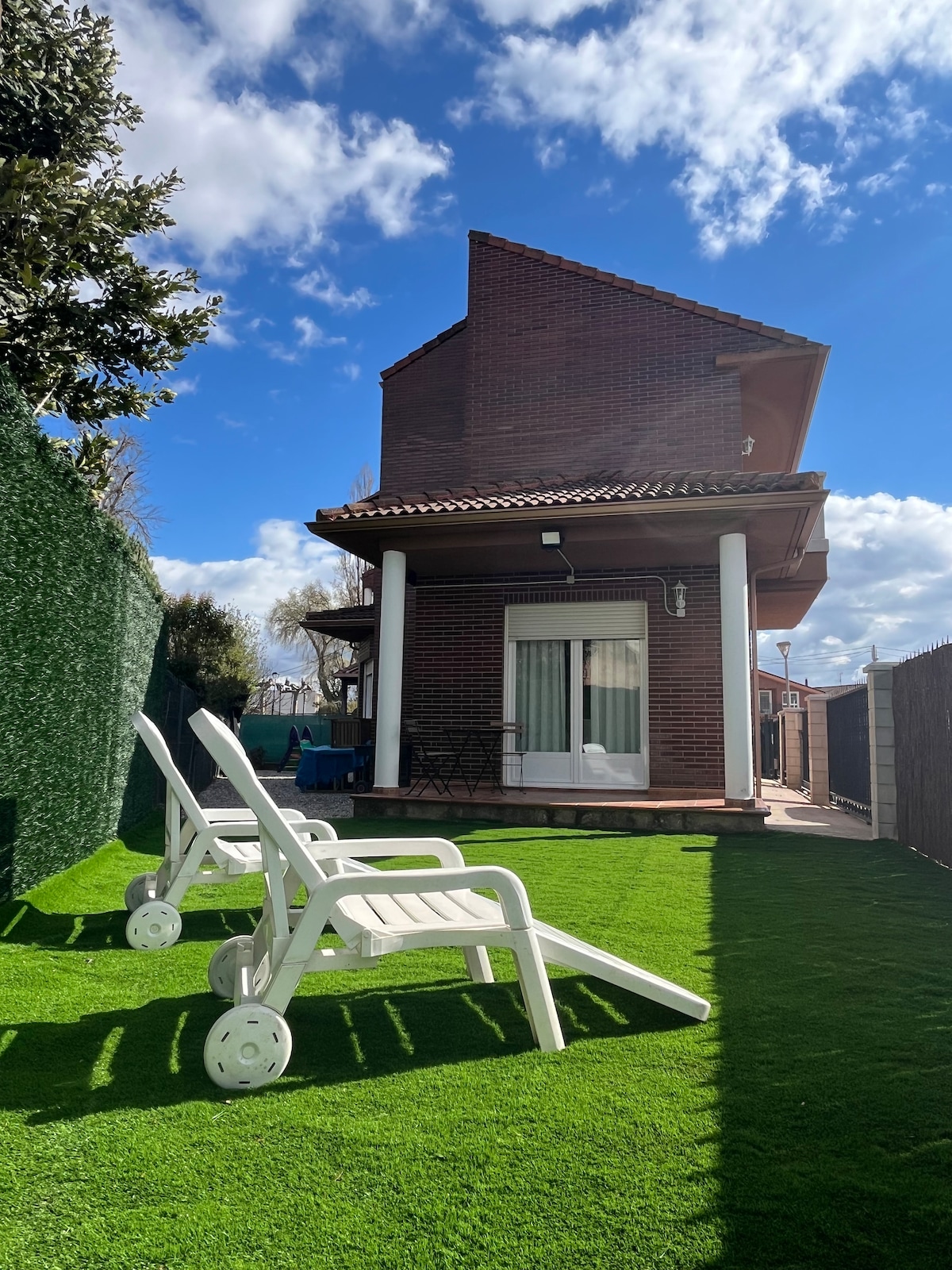 Jól karbantartott dupla kerttel rendelkező ház grillezővel és egy másik fűvel a napozáshoz. Ingyenes hétvégi reggelit tartalmaz. 2 ingyenes garázshelyiség. Nagyon csendes városiasodás, 100 méterre a golfpálya klubházától, kávézóval, étteremmel és medencével. 15 percre Logroñótól, amely ideális hely a La Rioja bejárásához. A Neveras de Sojuelába vezető túraútvonalak és a mountain bike erdős területen található. Utazóágy. HÁZIÁLLATOK NEM ENGEDÉLYEZETTEK.