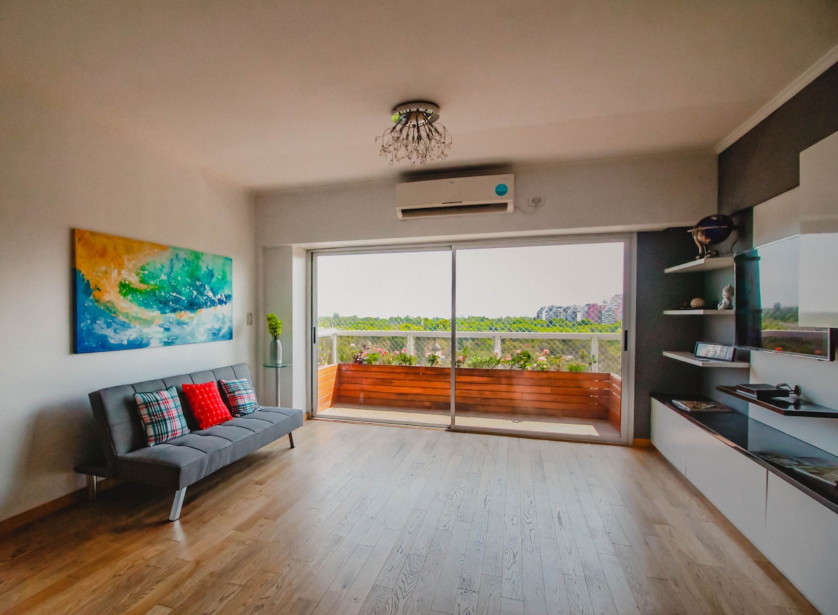 Kiváló kilátás a Buenos Aires-i állatkertre!!! Nagyon világos!! Minimalista dekoráció. Leírhatatlan!! Nagyon szép nappali nagyon jól felszerelt teakonyhával . A szoba két ággyal vagy kétszemélyes ággyal rendelkezik, ahogy szeretnéd. Fürdőszoba zuhanyzóval. A nappaliból egy szép erkélyre juthatsz, ahonnan az egyik legjobb kilátás nyílik Buenos Airesre. Légkondi van a nappaliban.