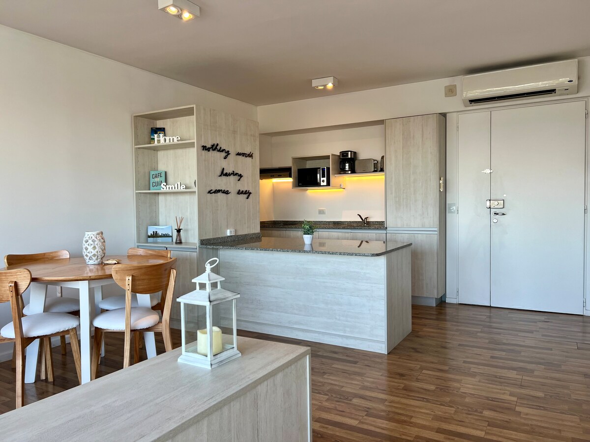 Stylish apartment featuring a fully equipped kitchen from a professional chef. Test your cooking skills trying the wide variety of species at your disposal Enjoy the panoramic views from a 10th floor, overseeing the polo field. Finish your day staring at the sunset from the balcony. Sink into the cozy sofa and watch a movie in a 55-inch smart TV with home theater for surround sound. Grab the skateboard and wonder around Palermo's gardens, lakes and parks just a block away.