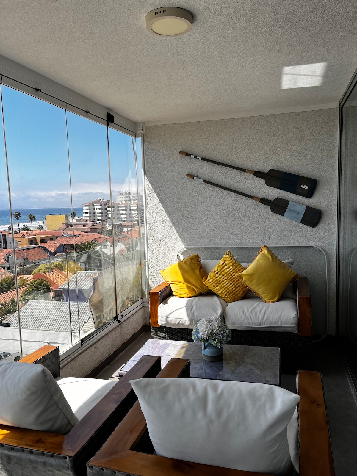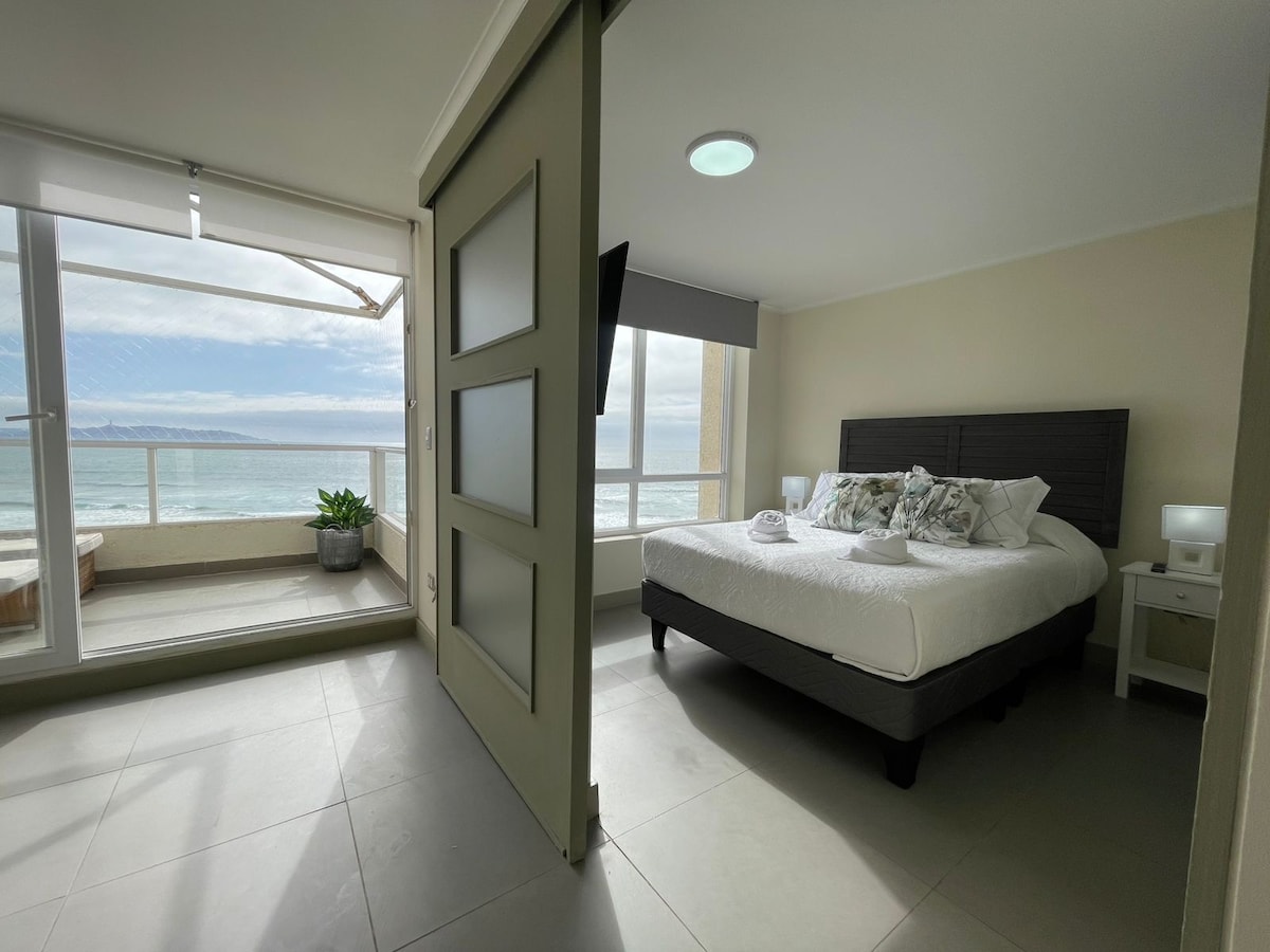 Hangulatos lakás, ideális a családdal való szórakozáshoz, közvetlen hozzáféréssel és kilátással. 2 hálószoba 5 főig, biztonsági hálók, felszerelt teakonyha, nappali TV-vel - IPTV több mint 2000 nemzetközi csatornával, Wi-Fi. Terasz mosógéppel felszerelt kunyhóval. Privát parkolás 1 jármű számára, úszómedence, quincho. Kiváló elhelyezkedés Puerta del Mar lakónegyedében, a La Serena világítótorony északi szektorában.