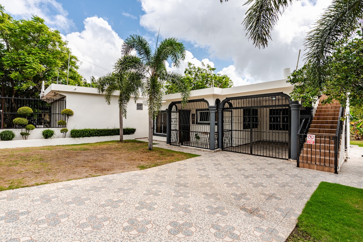 Lépj vissza a Jarabacoa buja trópusi erdővel körülvett természettel. Ez a modern hegyi otthon lebegő mennyezettel, természetes anyagokkal, kontrasztos textúrákkal és közös szabadtéri medencével rendelkezik. Az ingatlan néhány percre található Jarabacoa városától és a turistalátványosságoktól, például a vadvízi evezéstől, a kerékpáros ösvényektől, a sziklaugrástól, a siklóernyőzéstől, a drótkötélpályától és egyéb kirándulásoktól. A nyaralókomplexum a környék legnépszerűbb steakéttermével szemben található, és közösségi medencével, játszótérrel, tenisz- és kosárlabdapályákkal rendelkezik. Az otthon kiadása a vendégek kizárólagos használatára szolgál. Vészhelyzet vagy előre nem látható probléma esetén az ingatlankezelő segít a vendégeknek. Ha kérik és elérhető, további díj ellenében biztosíthatsz takarítási szolgáltatást, beleértve az ételkészítést (reggeli, ebéd, vacsora). Az ingatlan a Buena Vista, Jarabacoa környékén található üdülőközpontban található. Tél.: +1 202-476-9402 Az üdülőhely elhelyezkedése stratégiai jelentőségű, és jó hozzáféréssel még tömegközlekedési vonalak is vannak, amelyek közvetlenül az üdülőhely bejárata előtt haladnak át. A ház baldachinnal rendelkezik, amelyen négy (4) jármű fér el. Van egy látogatói parkolójuk is, ahol tíz (10) jármű fér el, körülbelül 50 méterre a háztól. Az otthonban van generátor áramkimaradás esetére.