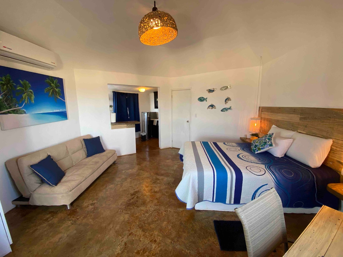 Ez a környezetbarát szálláshely első sorból nyújt napkeltei kilátást a Cortez-tengerre, amely kaput nyit a szárazföldi és tengeri élmények világába. Ússz együtt ördögrájákkal, oszd meg a tengert a vadon élő orkákkal, vagy lazíts az érintetlen partokon. A modern kényelem találkozik Baja nyers szépségével ebben a hangulatos, 2 hálószobás, 1 fürdőszobás, második emeleti lakásban. Csak 7–10 percre a strandoktól, tengeri szafariktól, kávézóktól, melegforrásoktól, hegyi kerékpározástól és jógától. Maradj kapcsolatban a gyors Starlink Wi-Fi-vel – ahol a kaland találkozik a nyugalommal.
