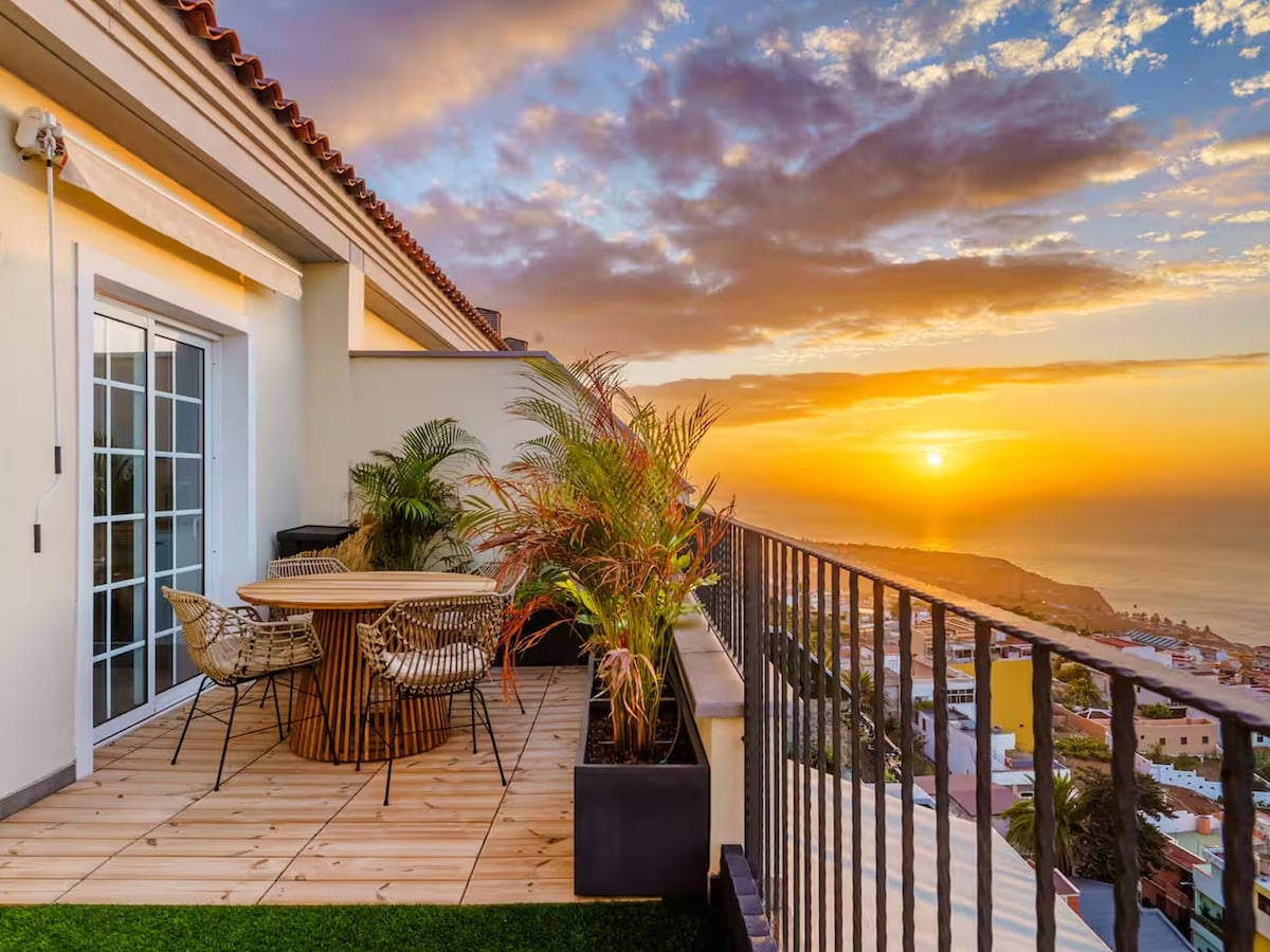 Apartman kiváltságos kilátással a tengerre és a Teide-ra. A tulajdonosok szívélyes bánásmódot, funkcionális dekorációt és világos művészi részleteket kínálnak. Nappali szatellit t.v. wifivel , teakonyhával és 2 indukciós tányérral, mikrohullámú sütővel ,kenyérpirítóval, vízforralóval ,kávéfőzővel. Felújított fürdőszoba zuhanyzóval, hajszárítóval és fürdőköpenyekkel. Tágas hálószoba az első emeleten Egyszemélyes, bútorozott terasz látványos kilátással