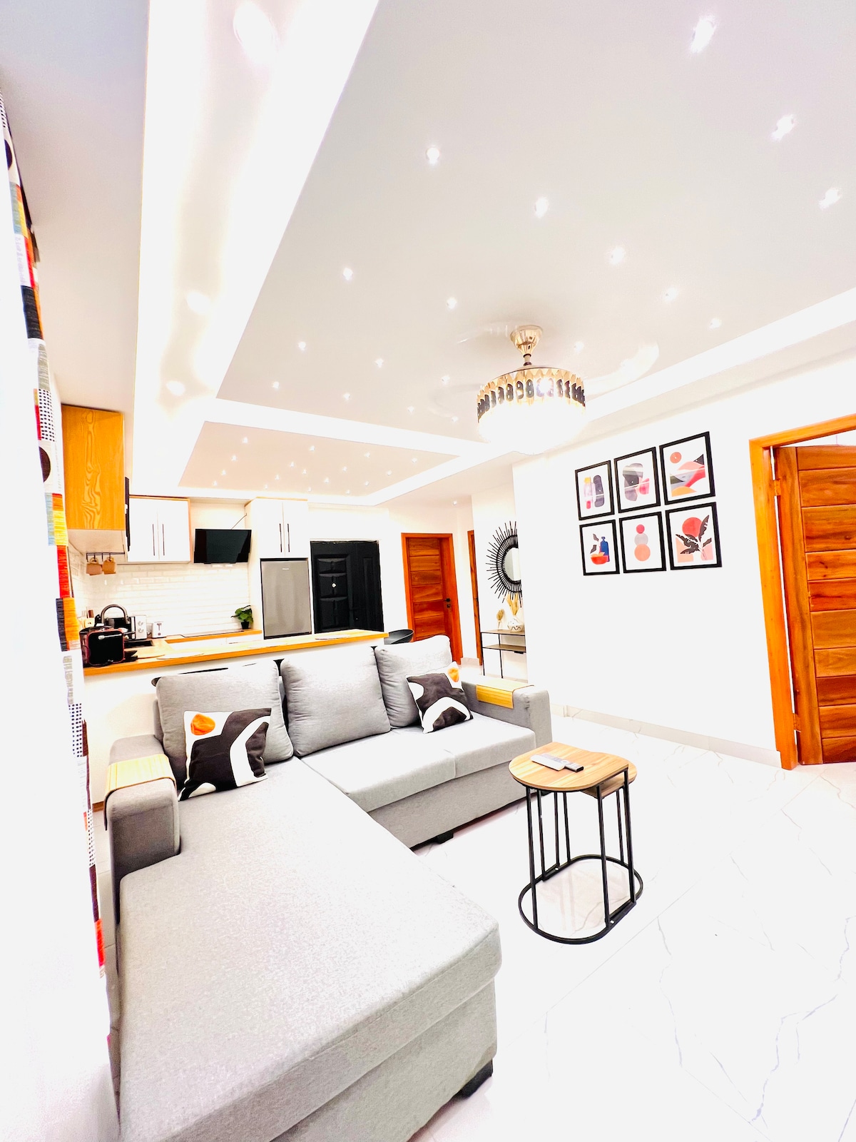 Welcome to my 2-bedroom townhouse in Tse Addo! Nestled in a gated community of 8 homes, this cozy space offers comfort and convenience, 20 minutes from Kotoka International Airport. Explore nearby Labadi beach and Labone for nightlife and dining. Relax in the open living area with a 92'' projector, enjoy the fully-equipped kitchen, or work from the dedicated workspace. With AC, a self operated generator , high-speed Starlink and more - perfect for remote workers!