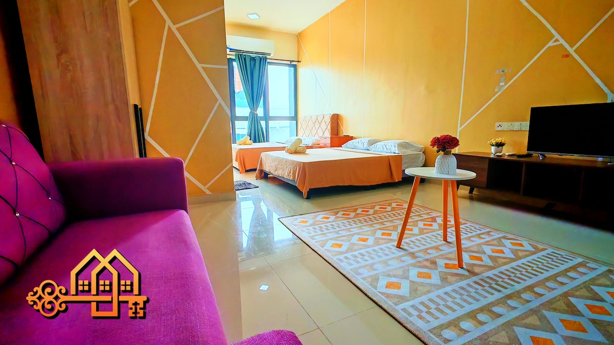 Fedezd fel hangulatos stúdiónkat, amely 2-3 fő elszállásolására alkalmas egy queen méretű ággyal és egy kanapéággyal. A KLIA T1/T2-től mindössze 15 perces autóútra található helyet számos étterem, gyorsétterem, élelmiszerbolt és mosoda veszi körül, amelyek mindegyike sétatávolságra található. Kóstold meg az összes kényelmi szolgáltatást, beleértve a játszóteret, a grillezőt, az edzőtermet és az úszómedencét, éjjel-nappali biztonsággal. * Nem tudod leadni a csomagjaidat az érkezés előtt. A tervezett épület miatt 10 lépcsős lépcsőt kell végigsétálnod a lifthez.