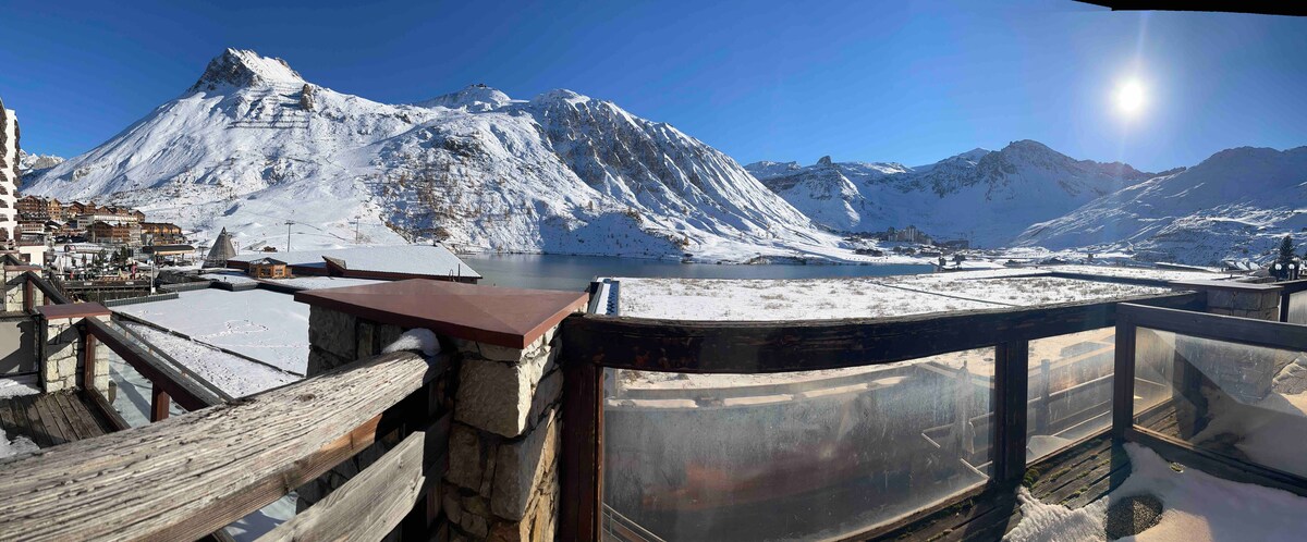 Appartement de charme avec vue panoramique sur le lac et la Grande Motte. Classé 3 étoiles par l'office de Tourisme de Tignes. Situé au centre de la station, à 5 minutes à pied des pistes, et à 50 mètres d'un arrêt de navette gratuite, vous apprécierez la proximité avec le lac et les montagnes. Boulangerie, restaurants, pharmacie et petits commerces à proximité. Parking disponible au pied de l'appartement l’été. Emplacement calme, et balcon avec vue imprenable.