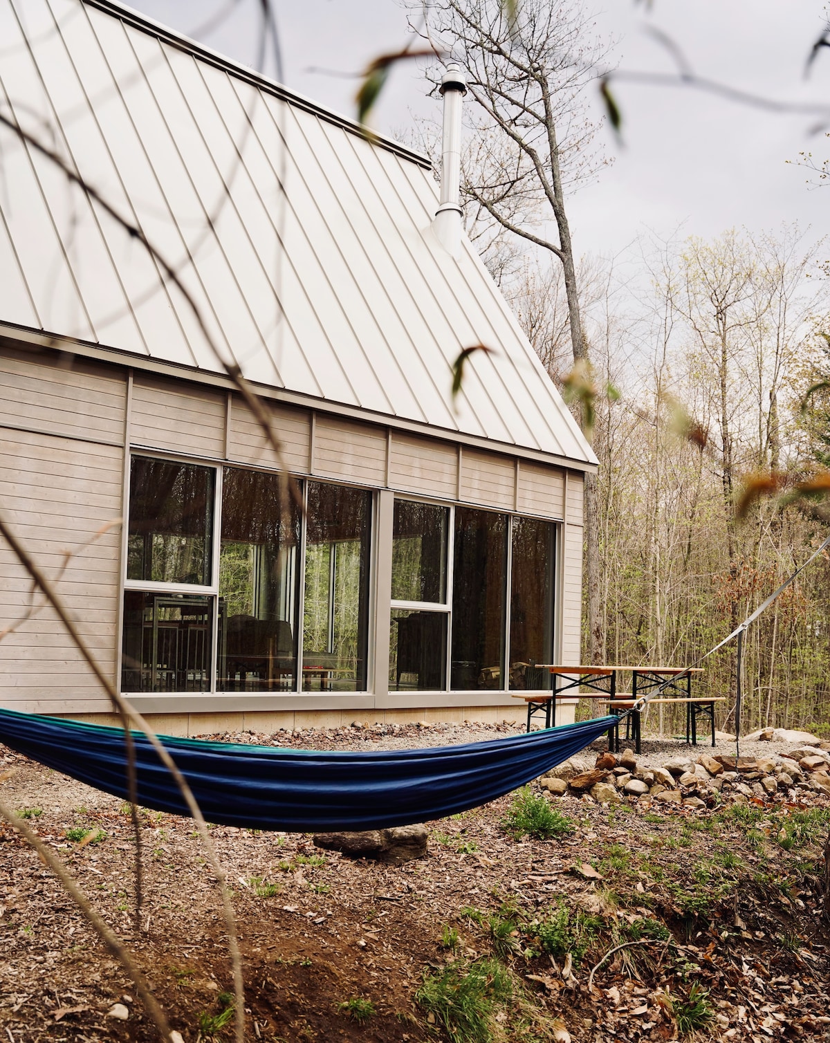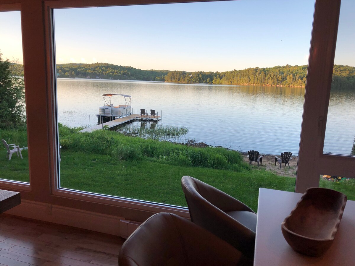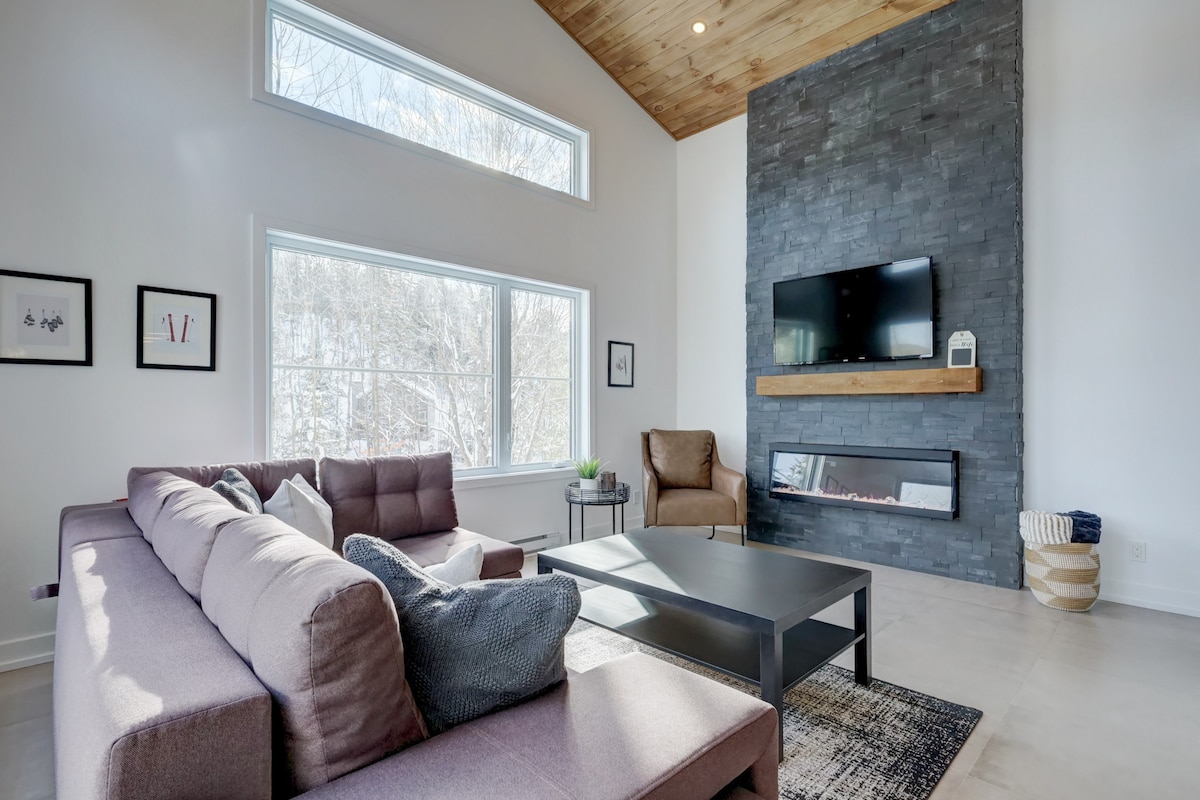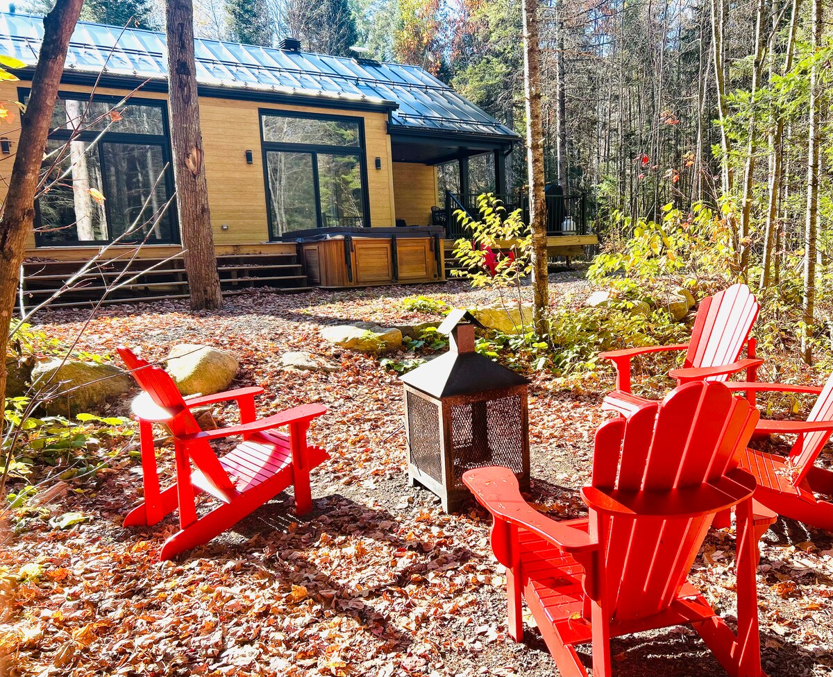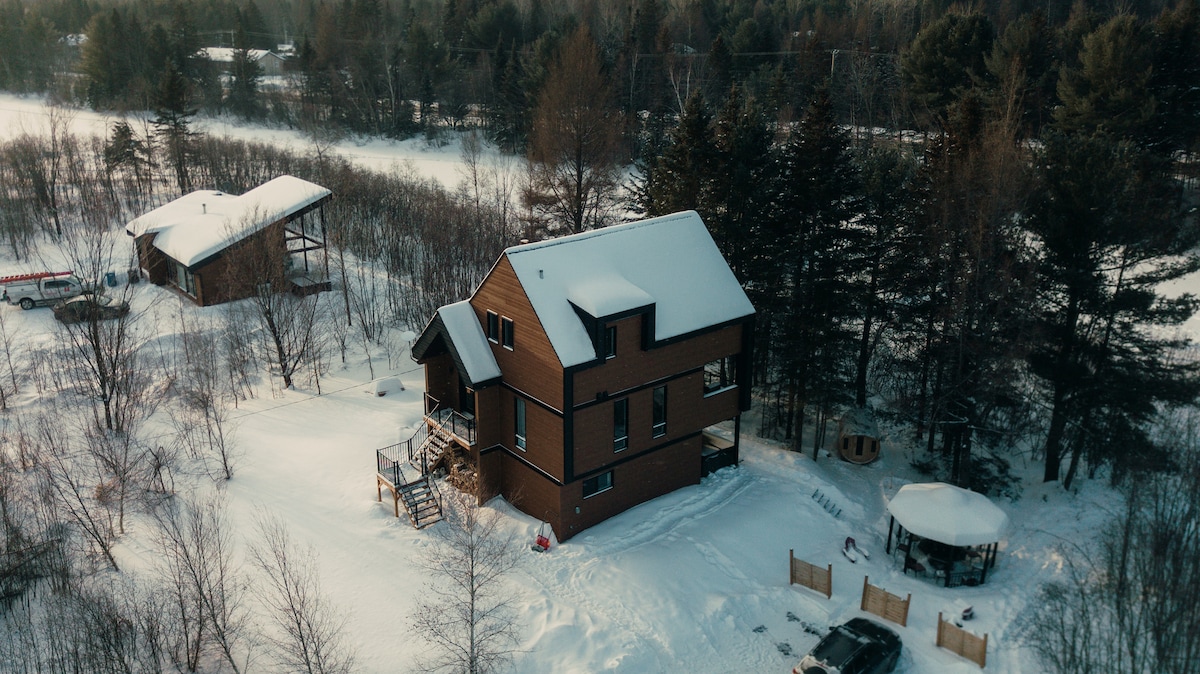 Nordic forest chalet is perfect for spend quality time as a couple (or with a kid), or for a work-retreat (with high-speed WiFi). A fából készült belső tér meleg és otthonos. A teljes magasságú ablakokból lenyűgöző kilátás nyílik egy erdős völgyre. A nyitott koncepciójú konyha és a nappali tart a beszélgetésben főzés közben. Ha inkább a szabadban szeretnél főzni, van egy tűzrakóhely grillezővel és szabadtéri étkezőasztallal. Mindössze 70 perc autóútra Montrealtól. A tó 25 perc sétára van, ha a közelben parkolsz.