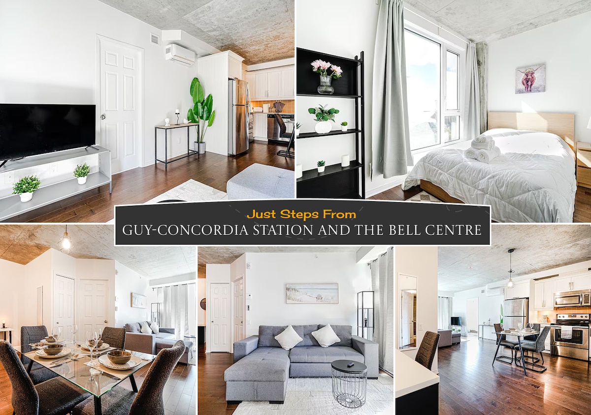 A belváros szívében található, közvetlen hozzáféréssel a Bell Centerhez! Élvezd a luxust és a kényelmet egy teljesen berendezett, egy hálószobás lakással, amely ingyenes kávét, kenyérpirítót, vízforralót és minden konyhai eszközt tartalmaz. Szauna, medence, edzőterem számos súlyzóval és géppel, skylounge, játékterem, társalgó és terasz több grillezővel, amelyek mindegyike a rendelkezésedre áll! Élvezd az ingyenes mélygarázst és az 1 perces hozzáférést a metróhálózathoz anélkül, hogy ki kellene lépned a szabadba! A Netflixet is beleértve