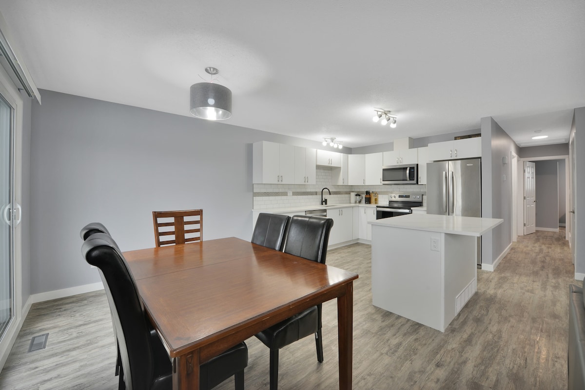 Ez az újonnan felújított otthon tökéletes egy utazó családnak / csoportnak, amely 1600 négyzetméter/lábnyi hellyel büszkélkedhet a szórakozáshoz, beleértve két nappalit és egy teljesen elkerített hátsó udvart. Nappal csak öt percre vagyunk a strandtól, éjszaka pedig csendes menedéket kínálunk a tömegtől távol. Kényelmesen a 11-es autópálya mellett, mindössze néhány háztömbnyire a vásárlástól, éttermektől, parkoktól és a filmektől. Szeretnéd felfedezni Közép-Albertát? 12 percre vagyunk Red Deer-től és 20 percre Lacombe-tól. STAR-04381