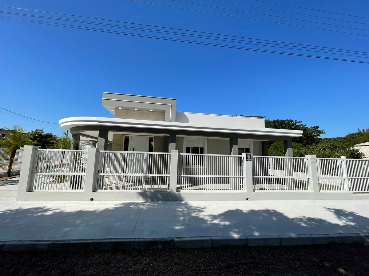 Sua família vai estar perto de tudo ao ficar neste lugar bem-localizado. A casa é bem equipada com Ar Condicionado, Internet Wi-Fi rápida, TV de tela plana com Netflix, canais de filmes, séries, esportes e outros. Conta também com utensílios de cozinha e cadeiras de praia. O espaço dispõe de área coberta com churrasqueira, além de ampla sala e cozinha integradas, ideal para a convivência dos hóspedes.