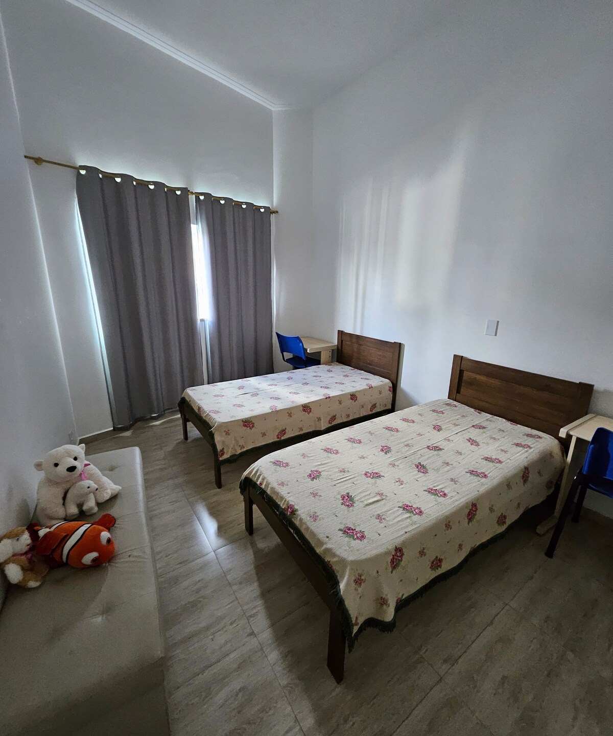 Suíte confortável com 1 cama de casal e 2 camas de solteiro, TV Smart, ventilador de teto, frigobar, mesa para trabalho e espaço para guardar roupas. Varanda com mesas, cadeiras, poltronas, redes, churrasqueira, mesa de ping pong, jogo de dardos e jogos de tabuleiro. Piscina com muito espaço pra tomar sol. Cozinha com fogão, micro-ondas e todos os utensílios necessários. Fire Place. Estacionamento ao lado da suíte. Estamos à 5 minutos do centro da cidade e à 15 minutos da Cachoeira Grande.