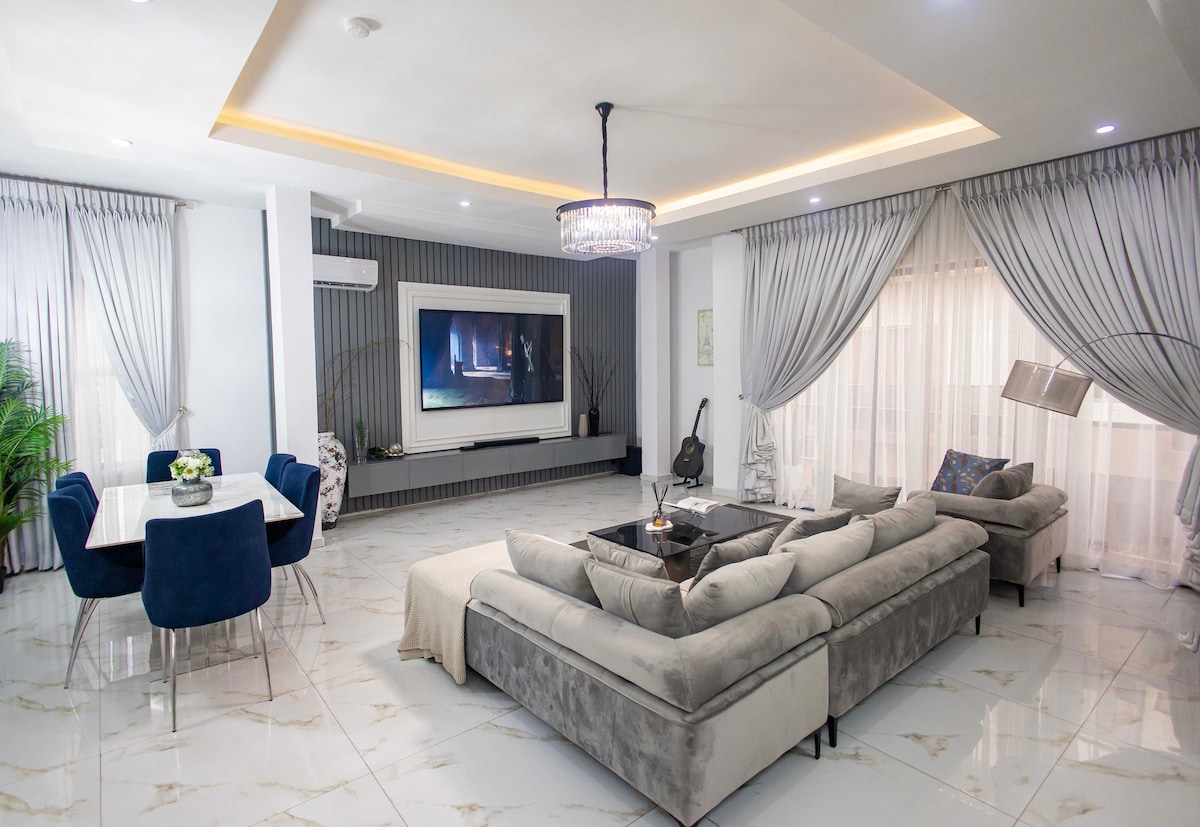 Luxus berendezésű, 3 hálószobás, teljesen felszerelt apartman egy rendkívül biztonságos birtokon a Meadowhall, Ikate, Lekki területén – mindössze 5 percre a Wave Beach, Lekki Phase 1 és Ikoyi területétől. ✅ Nonstop áram és biztonság ✅ PS5 és sznukertábla ✅ Okostévék minden szobában ✅ Nagy sebességű Wi-Fi (3 szolgáltató) ✅ Netflix és Amazon Prime Video ✅ Jól felszerelt konyha ✅ 2 ingyenes parkoló ✅ Medence és edzőterem ✅ Intelligens önálló bejutás ✅ Takarítás és ingyenes takarítás ✅ Repülőtéri transzfer és protokollszolgáltatás (felár ellenében)