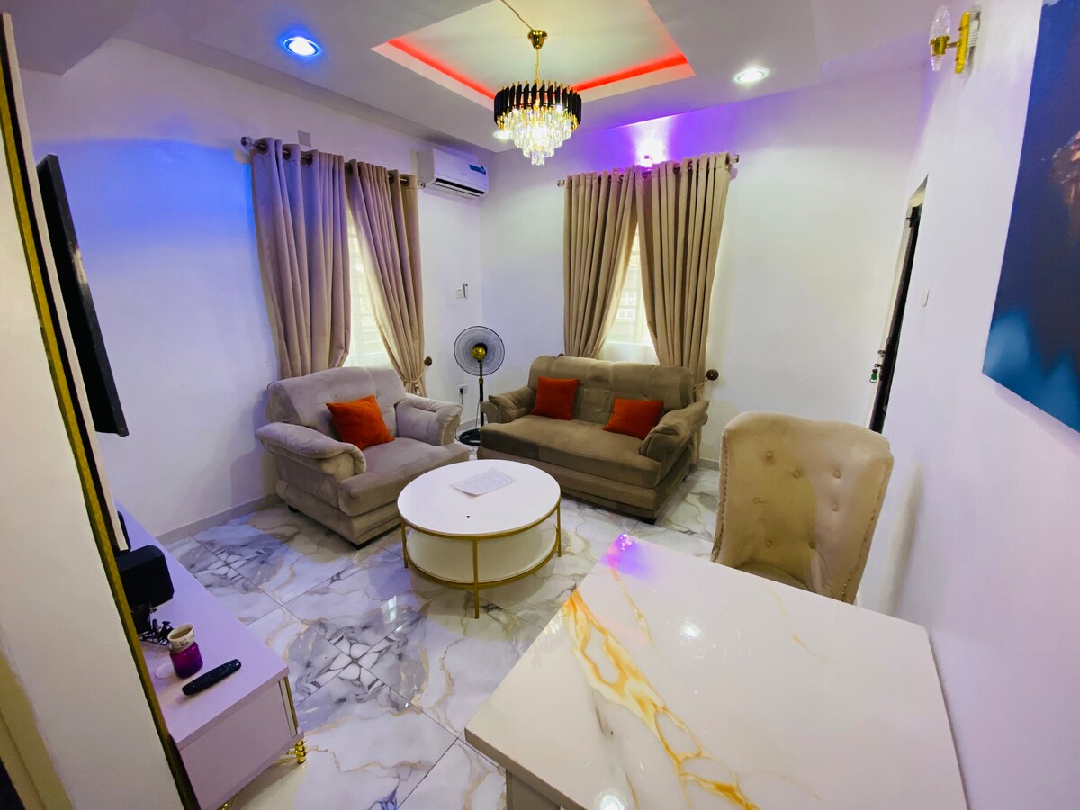 Teljesen berendezett, minimalista 3 hálószobás apartman saját szobákkal, vendég WC-vel, felszerelt konyhával, lifttel, 24 órás áramellátással és biztonsággal, Dstv-vel és internetszolgáltatással. A nigériai Lagos Leafy, Serene és High Brow Ikoyi területén található, ahonnan könnyen elérhető a Lagos-sziget és a szárazföld minden része. A tér Külön nappali és saját hálószoba zuhanyzóval Fulltime házvezetőnő a helyszínen