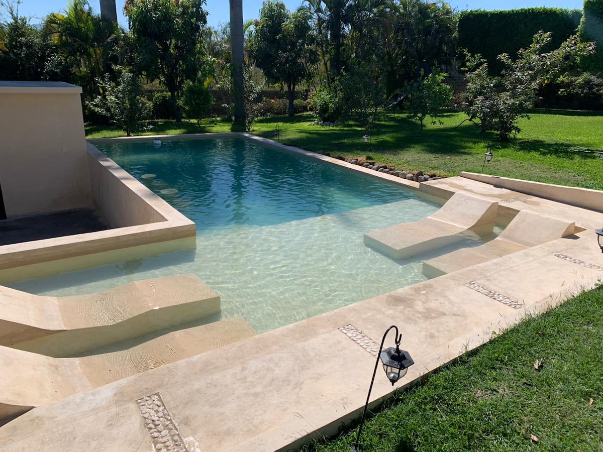 Splendid Quinta "SantaJulia" to enjoy the whole Weekendю️ Alberca with HEATING and AIR-CONDITIONED rooms. +20 fő, 5 hálószoba, 4 teljes fürdőszoba, zuhanyzó és 1/2 fürdőszoba a medencéhez. Wi-Fi. Terasz grillezővel, ágyakkal, napernyőkkel, strandszékekkel, Mesa pingponggal és Futbolitóval. Teljes konyha 100% -ban felszerelt. Nappali TV-vel, SKY TV-vel, Blu-Ray-vel, PS4-gyel, filmekkel és videojátékokkal. 15 percre a TEC Cuernavacától Éttermek és üzletek 10 perc alatt elérhetők. Ideális bulikhoz és/vagy rendezvényekhez️