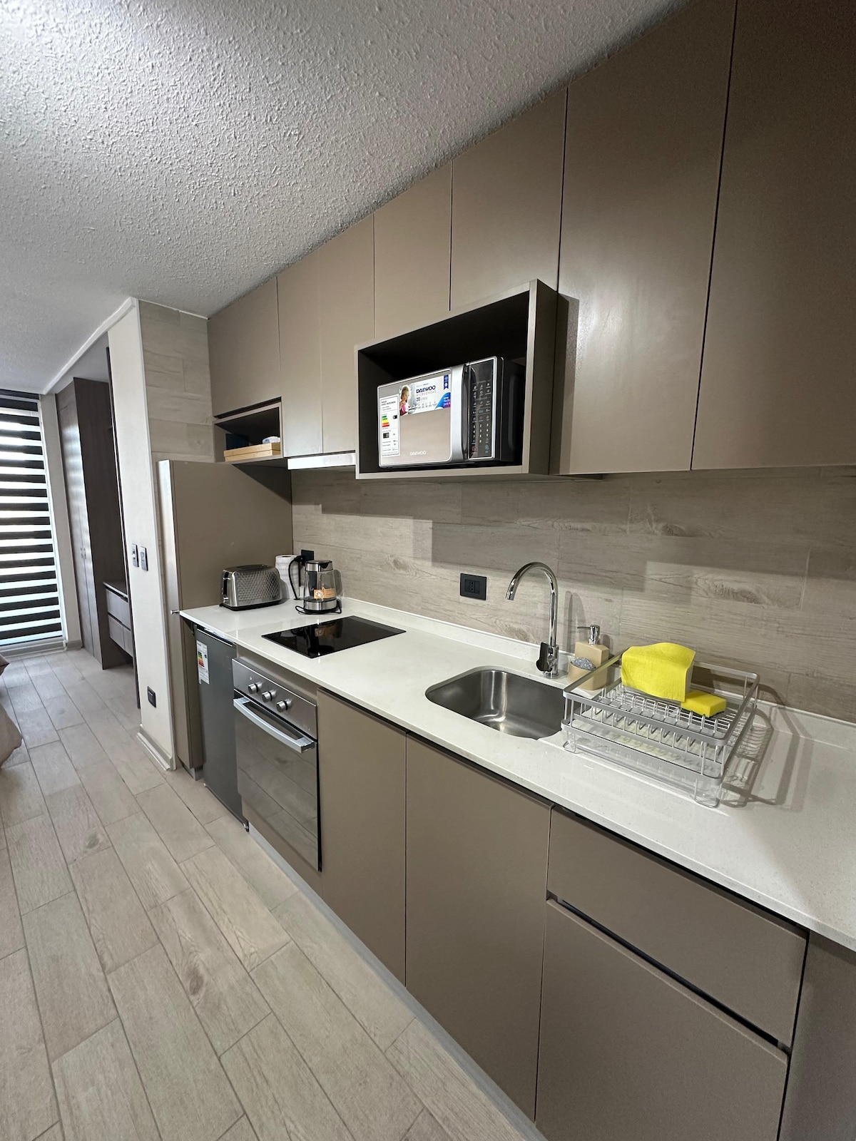 Disfruta de nuestro estudio en el corazón de Concepción, cerca de universidades, transporte, centros comerciales y restaurantes. Ideal para dos personas, el departamento incluye cama de dos plazas, cocina equipada, baño con tina, smart TV y mesa para trabajar/comer. El edificio ofrece gimnasio, sala de coworking, sala de entregas, lavandería, quinchos panorámicos y salón gourmet. ¡Conveniencia y confort en una ubicación central! No hay estacionamiento particular de la propiedad.