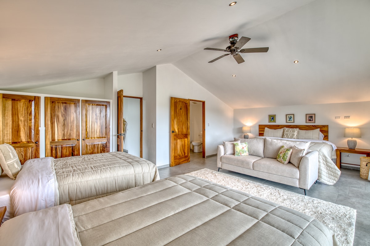 A hegy tetején található vendégház nyugodt és lélegzetelállító kilátást nyújt a tóra, a buja esőerdőre (3 hektáros festői túraútvonalakkal), az Arenal vulkánra és a lenyűgöző naplementékre. ~40 perc autóval a La Fortuna látnivalói; a tökéletes békés elvonulás! Lazíts a természet nyugtató hangjaira, miközben élvezed a medencét csúszdával és vízeséssel, a pezsgőfürdőt lenyűgöző naplementével, a jógaplatformot és az edzőtermet. 4x4-es jármű ajánlott. *A pezsgőfürdő 3 órás előzetes értesítéssel érhető el.