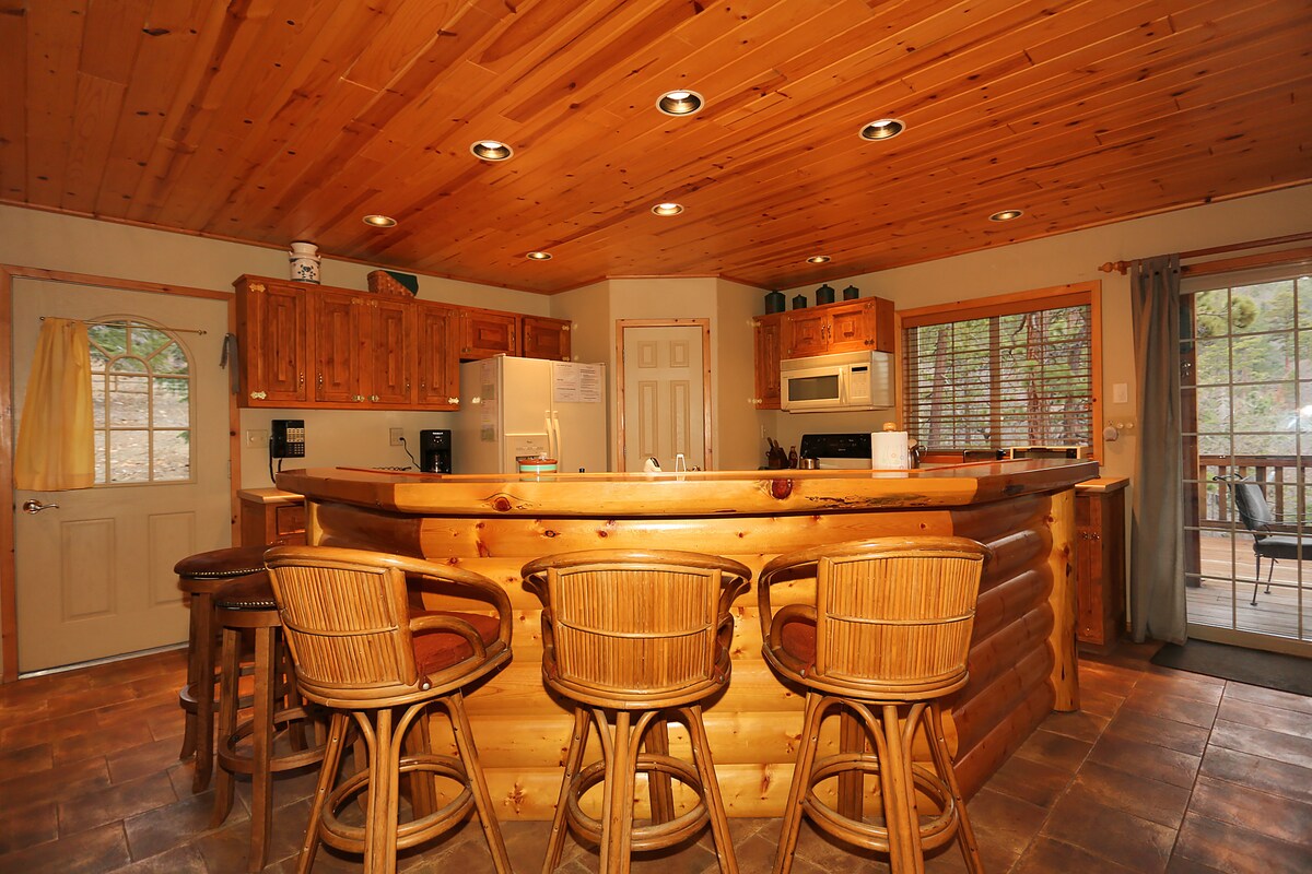 Large 1100 sqft house has been beautifully decorated with 16 foot high vaulted pine wood ceilings, natural light, a center piece fireplace plus a large, open plan entertainment area. This spacious “home away from home” sleeps 4 comfortably, with two separate bedrooms two bathrooms. Big Bear Phoenix Chalet is quiet, yet is centrally located and close to the lake, hiking, and skiing. It's part of the upscale residential neighborhood of Whispering Forest which is extremely clean and safe.