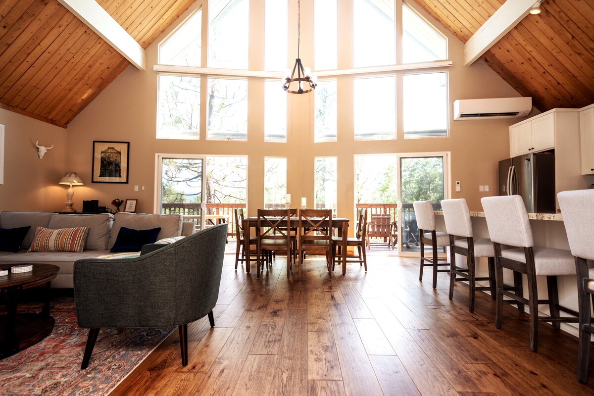 Üdv a Flying W-nél – hozd el a kutyusodat, és meneküljetek a fák közé. Ez a mesekönyvből kikerült, századközepi A-ház a Lake Arrowheadnél a magasba nyúló panorámaablakokon át erdőre néző kilátást kínál. Reggelizhetsz a felső teraszon, összegyűlhettek a tűzrakóhely körül a csillagok alatt, és élvezhetitek a vintage báj és a modern kényelem találkozását. 6 főnek, barátoknak, családnak és négylábú társadnak is van hely. Pár percre a falutól, közel a síeléshez, a nyugalom ölelésében.