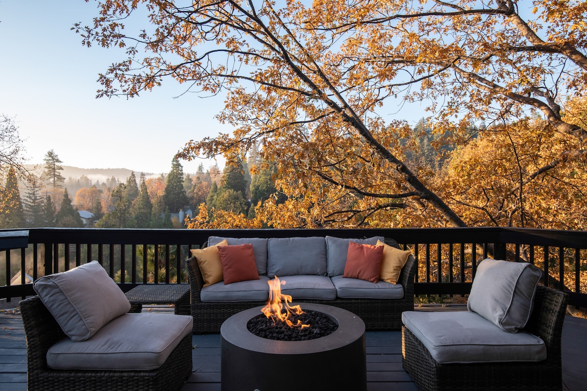 Üdvözöl a Little Bearfoot Cabin! 1925-ös egyszintes víkendház modern, fürdőjellegű kényelmi szolgáltatásokkal és külön A-vázas irodával, gyors Wi-Fi-vel a digitális nomádok számára. Luxus nyári tábor hangulata. Kényelmesen elhelyezkedhetsz a tűzrakóhely mellett, s'more-okat készíthetsz, élvezheted a szabadtéri vacsorákat, és pihenhetsz a pezsgőfürdőben, amely a magasra törő örökzöldek alatt található. Ha nem a csodálatos udvaron vagy, élvezd a központi fűtést. Kevesebb, mint 1,6 kilométerre a tótól, a falutól és a Lake Arrowhead sörfőzdétől. Hozzáférés a privát túraútvonalakhoz. Kutya- és gyerekbarát. Elektromosjármű-töltő