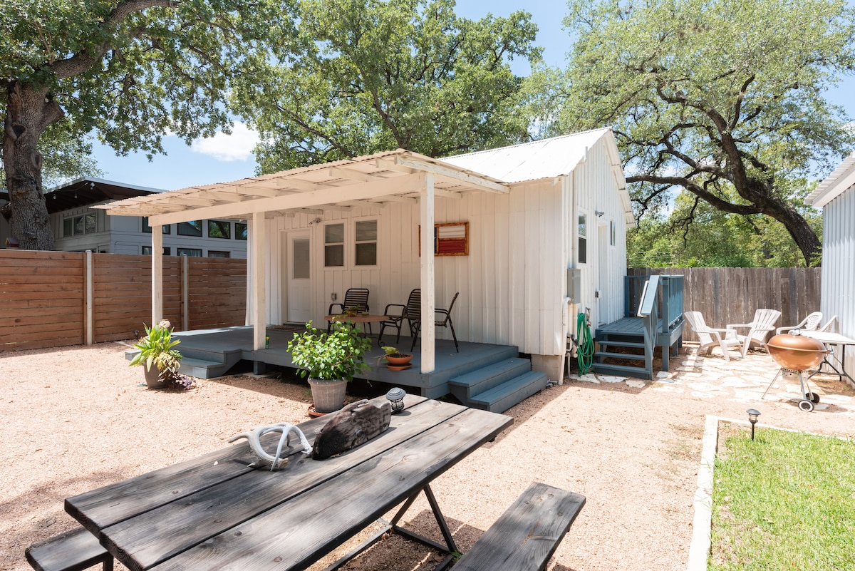 Kényeztesd vadonatúj, ragyogó casitánk báját, amely egy plüss king-size ággyal rendelkezik, amely tökéletes kényelmet ígér. Tapasztald meg a lazítás luxusát a saját, félreeső vendégházadban, amelyet kizárólag a tiédben élvezhetsz. Fedezd fel az ideális kényelmet, amely Austin összes üzletének közvetlen közelében található. Mindössze néhány percre a McKinney Falls State Park természetes szépségétől, mindössze 10 perces autóútra a Circuit of the Americas-tól (COTA), és rövid 15-20 percre a belvárostól és a repülőtértől.