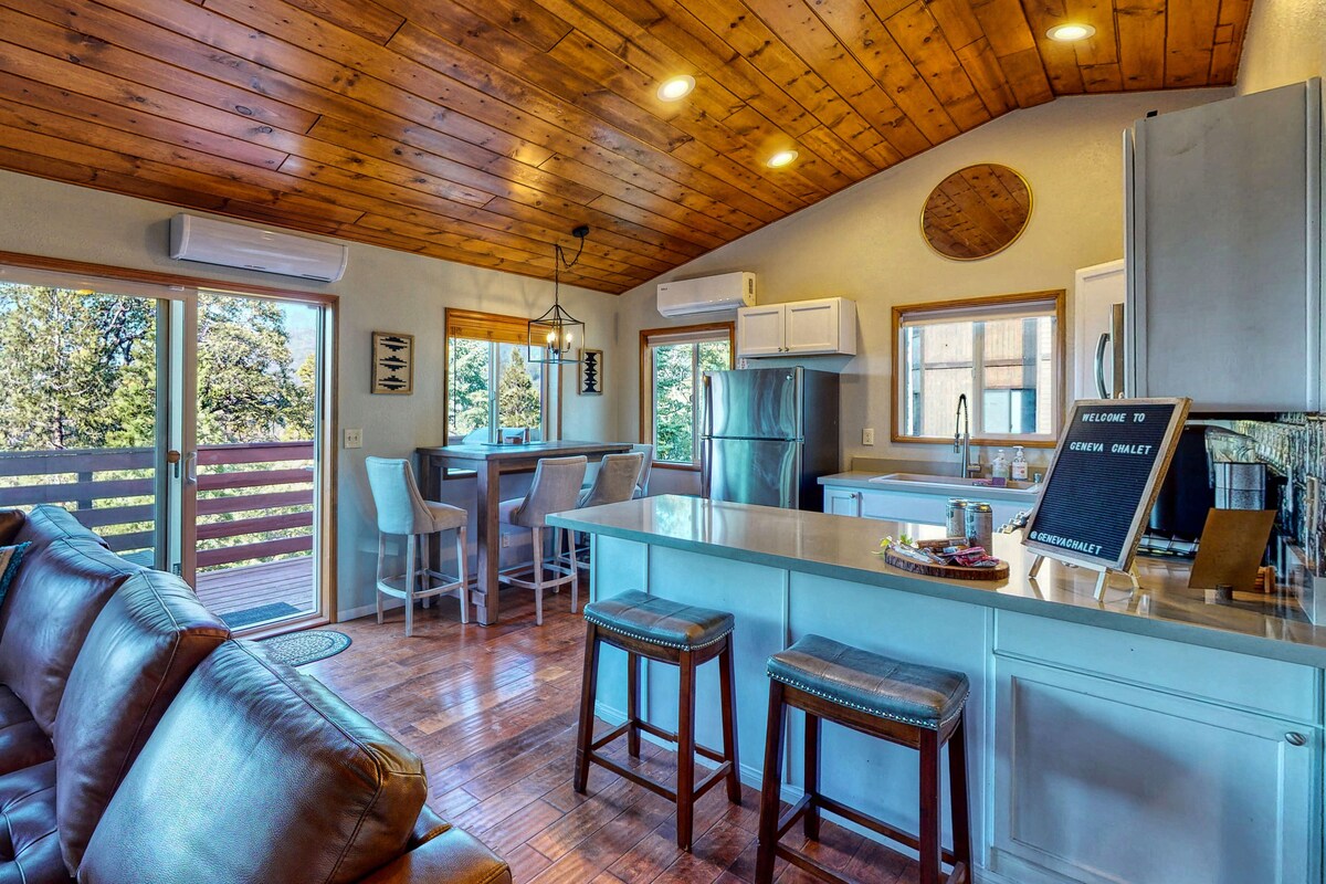 Üdvözlünk a Lakeview Cabinben! Dőlj hátra, és lazíts ebben a békés és stílusos víkendházban, ahonnan lenyűgöző kilátás nyílik a tóra és a hegyekre! A belső tér magas fa mennyezettel, kőből készült kandallóval és hangulatos loftlakással büszkélkedhet. A nyitott alaprajz lehetővé teszi, hogy ételt készíts, miközben a vendégeiddel csevegsz. A teraszon grillezhetsz és pihenhetsz is, miközben a naplementét és a csillagokat nézed. Egy vidám nap után olvass el egy könyvet, vagy bújj össze a tűz mellett. Igazi gyöngyszem!
