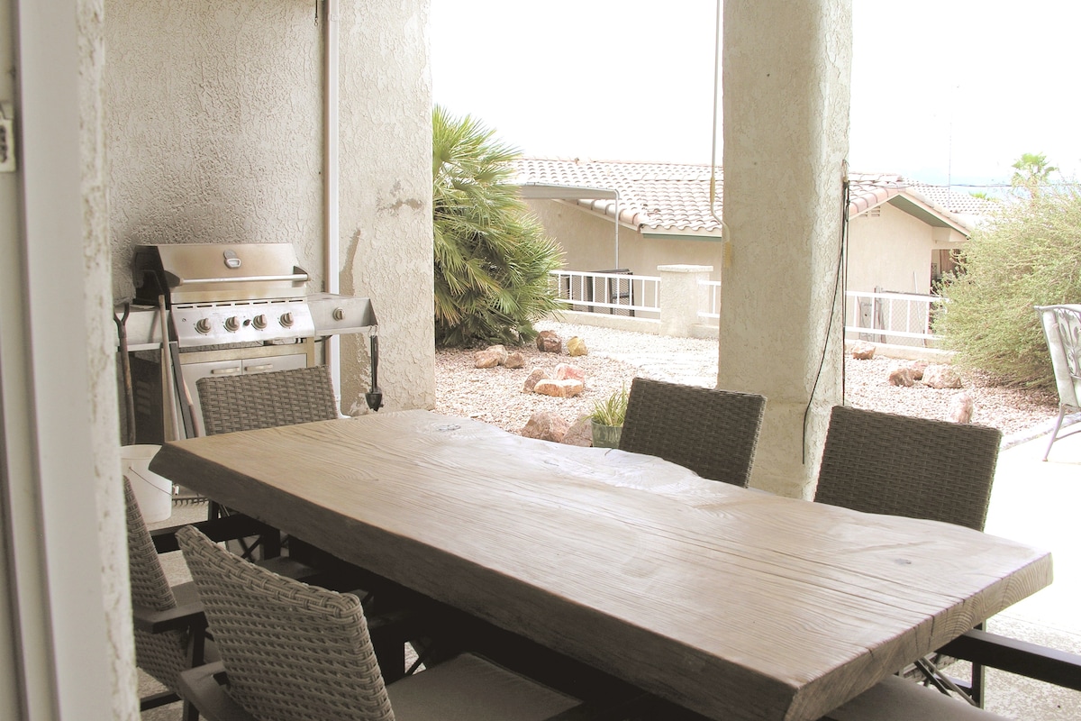 Nagy lakosztály saját, kulcsos bejárattal, amely egy fedett teraszra nyílik, ahonnan csodálatos kilátás nyílik a tóra, a sivatagra és a hegyekre. A Hwy 95-től és a csónakrámpától mindössze néhány percre található lakosztály privát szférát, kényelmet és csodálatos kilátást kínál a csodálatos arizonai naplementéinkre. A lakosztály ízlésesen berendezett, KING MÉRETŰ ÁGGYAL és memóriahabos kanapéággyal, valamint bárhűtővel, mikrohullámú sütővel, kenyérpirítóval, kávé- és teabárral, valamint alapvető fogásokkal rendelkezik. A grillező és az oldalsó rezsó ideális a medence melletti szabadtéri étkezéshez.