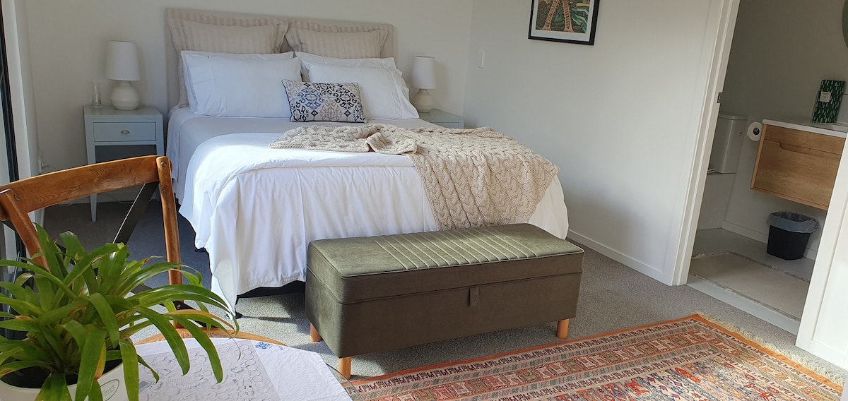 Welcome to your idyllic home away from home! Located just 15 min drive from Hamilton city/10 minThe Base shopping centre, 35 min Raglan/Hamilton airport. Run/walk our local Te Otamanui/Hakaramata trails. Private, warm, country setting with stunning farm views & all day sunshine!! Wake up & enjoy the tranquillity from your luxurious Queen Bed. Open up the sliding door onto your own private garden area. Enjoy high-speed Wifi! Cooking facilities and HUGE bathroom with bath. Good for the soul!