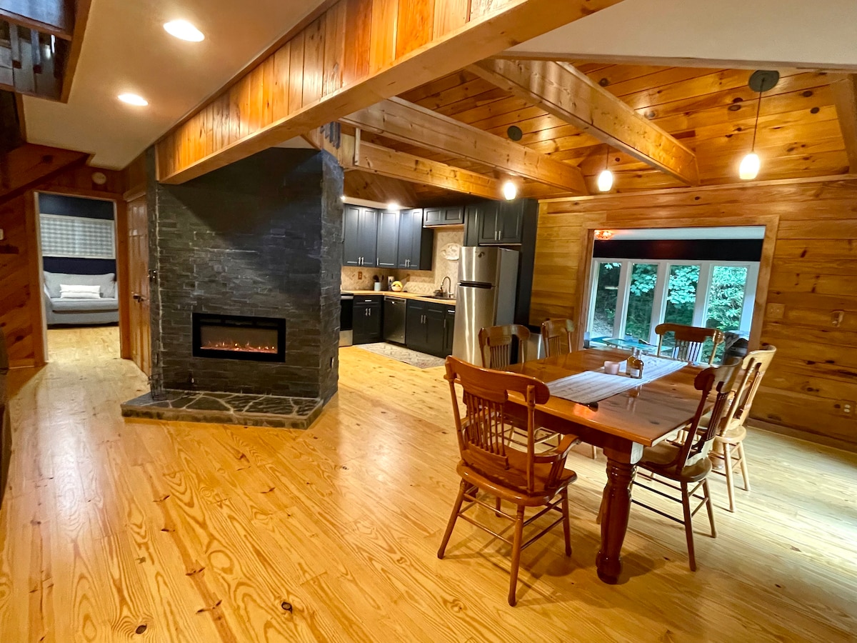 KÖNNYŰ TÉLI KÖZLEKEDÉS!! Képzeld el, hogy a stressz eloszlik attól a pillanattól, hogy elhagyod az autódat a víkendház alatti patak hangjával. Élvezd a kandallóval felszerelt lombházból, vagy a pataknál a tűzrakóhelynél vagy a szűrt hátsó verandán. A kisházban intelligens TV, WIFI, kábel, luxus ágynemű és törölköző található. Két mesterlakosztály várja a békés alvásban. Számos közeli borászat, vízesés, gyönyörű vonatút, pisztrángozás, tubing a folyón, vagy keresd fel a környék számos alma gyümölcsösét.