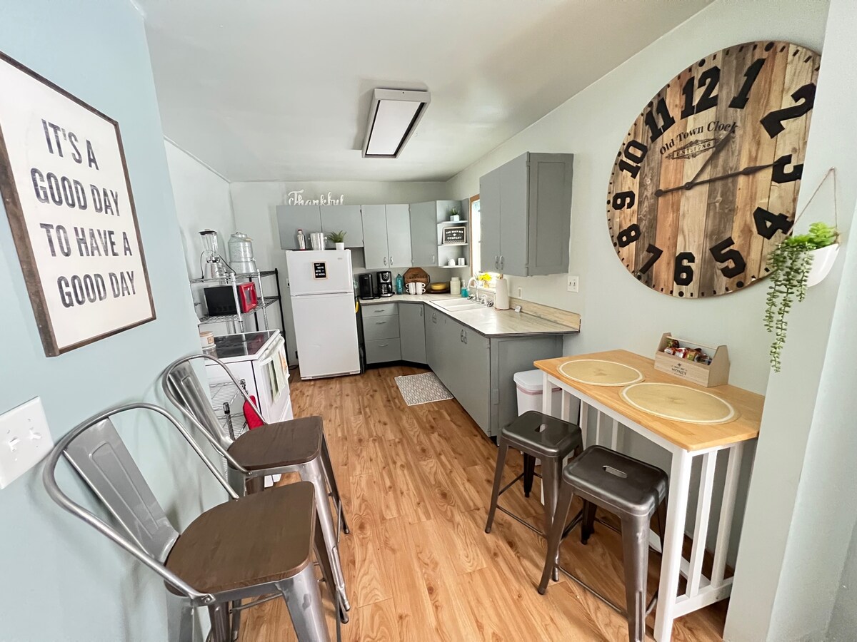 A reneszánsz kunyhóm 1935-ben épült. Két hálószoba, csúcskategóriás konyha, étkező, nagy nappali, 2 új fürdőszoba; mosoda. Saroktelek árnyékos fákkal, kertekkel, tűzrakóhellyel és grillezővel ellátott terasszal. Két háztömbnyire a kórháztól, az egyik a bíróságtól, a serifftől és a városi rendőrségtől. A Fő utca néhány háztömbnyire van. Élvezd az éttermeket, a kávézókat, a ruházati/ajándékboltokat, a mozit, a postát, a szezonális felvonulásokat és rendezvényeket. Sétálj egyet, vagy biciklizz a városon keresztül, vagy az utca túloldalán, a Forestry Parknál.