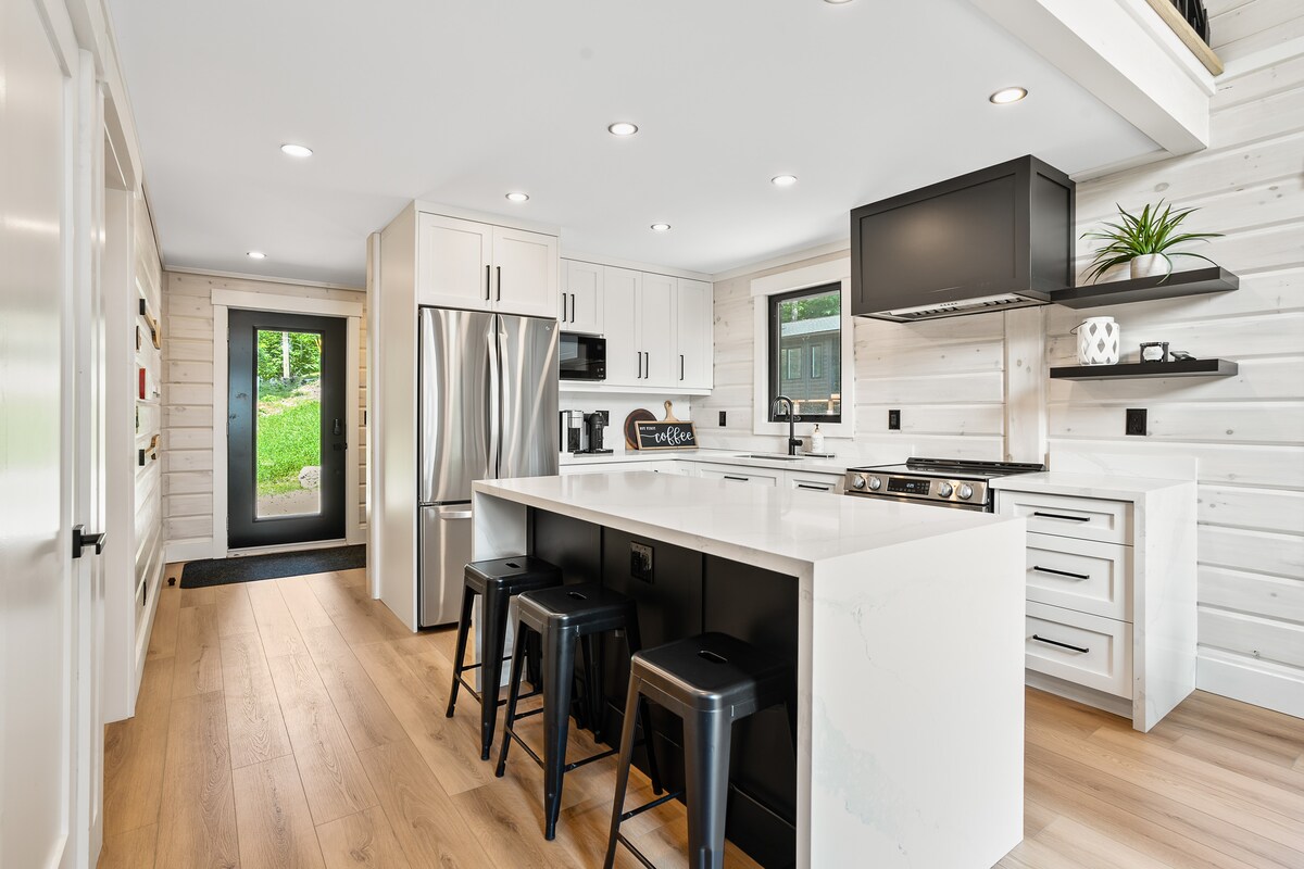 Modern 4 ágyas, 2 fürdőszobás faház BELL FIBE nagy sebességű internettel és új 49 fúvókás 6 személyes PEZSGŐFÜRDŐVEL, mindössze 5 percre a Mount St. Louis sípályától. A nyitott konyha/étkező/nappali egy hatalmas, erdőre néző teraszra nyílik. Tökéletes pároknak, kalandoroknak, családoknak és csoportoknak. Élvezd a privát túraútvonalakat, síelést, hótalpas sétát, kerékpározást/túrázást, biliárdot és sok minden mást. Jó magaviseletű kutyákat szívesen látunk. A helyi programokért keress rá a „The Chalet Moonstone” kifejezésre a YouTube-on.