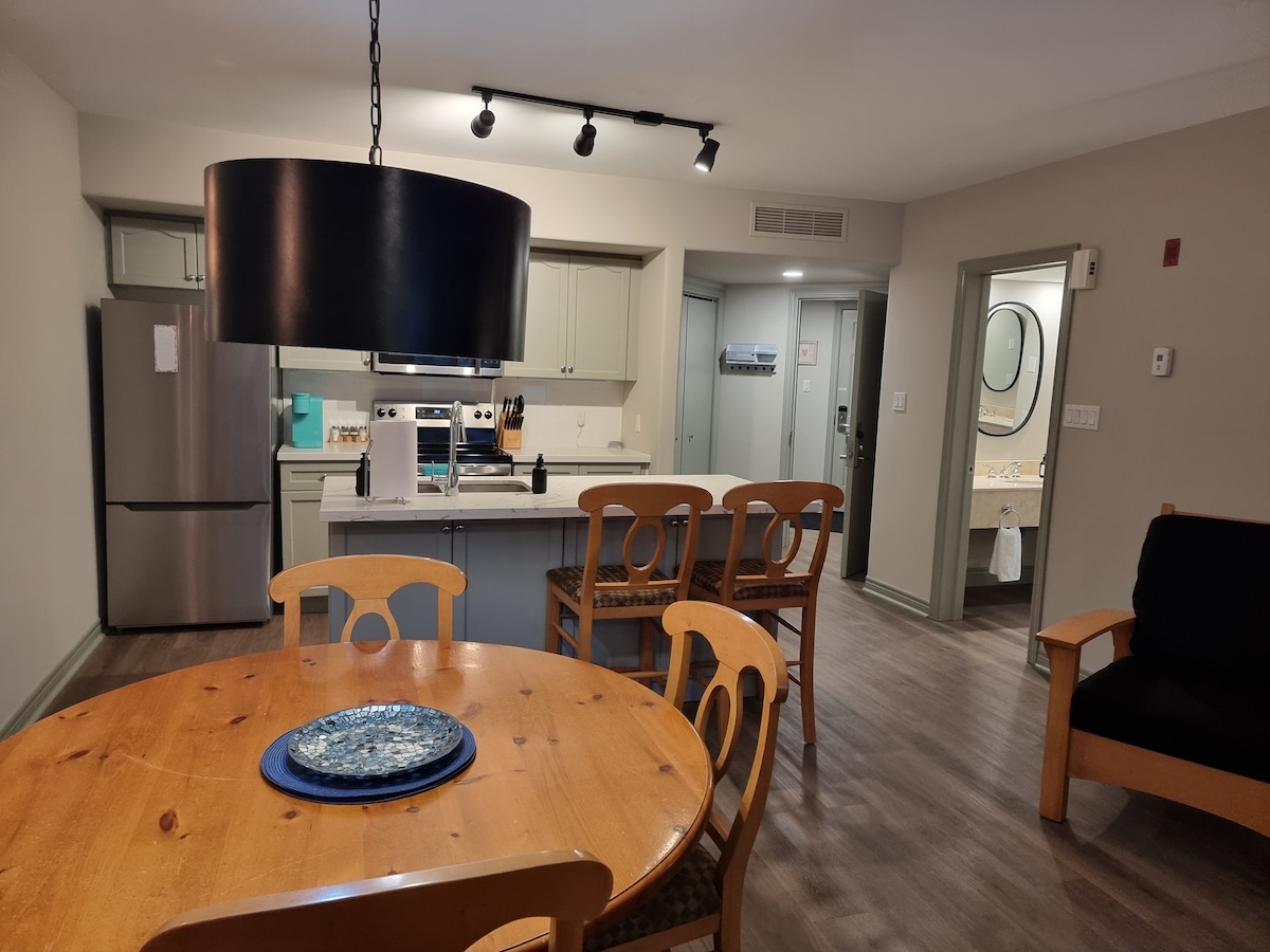 Élvezd a stílusos élményt ezen a tágas és nyugodt helyen a Carriage Country Club Resortban. Teljesen felszerelt dizájner társasházi lakás 2 lakosztállyal a tökéletes nyaralást kereső családok számára. Élvezd a békés éjszakát a privát jacuzzidban, és készítsd el a saját ételedet a teljesen felszerelt konyhában. Néhány perc autóútra a Horseshoe Valley Resorttól, és gyalog a Vettä Nordic Spa. Mount St. Louis Moonstone esetén mindössze 15 perc autóval. Fűtött beltéri/kültéri úszómedencénk, amely egész évben elérhető.