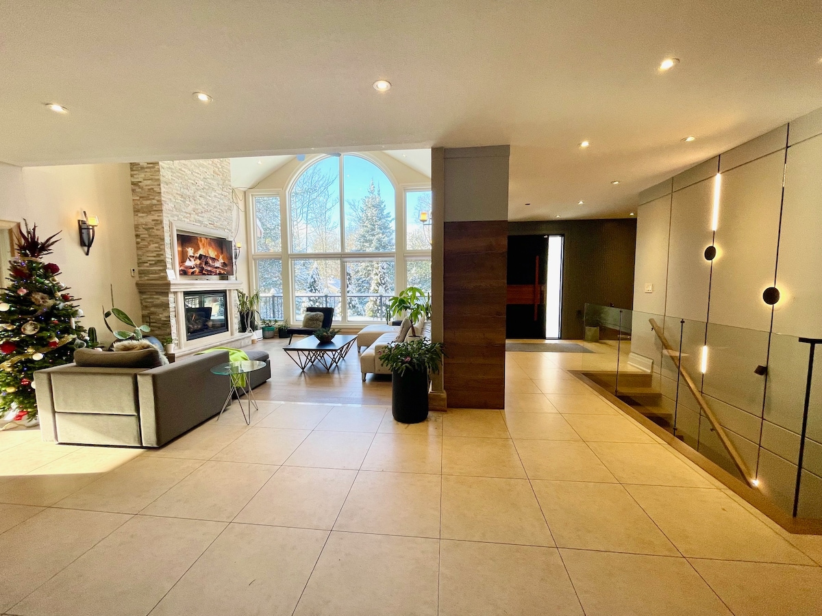 🌲A kalandok privát főhadiszállása a Horseshoe Valley-ben! 🌲 Privát 4 hálószobás, 2 lakosztályos hegyvidéki birtok – tökéletes családoknak és csoportoknak. Az egész lakosztály a tiéd lesz, és sok más Highland Estate-szálláshelytől eltérően ez a hely teljes mértékben privát. Élvezd a két hálószobát, a 4 ágyat, a teljesen felszerelt konyhát, a nyitott koncepciójú nappalit gázkandallóval, a két erkélyt, a Wi-Fi-t, az okostévéket, a lakosztályon belüli mosókonyhát és a prémium üdülőhelyi kényelmi szolgáltatásokat. Állatbarát és Superhostok kezelik.