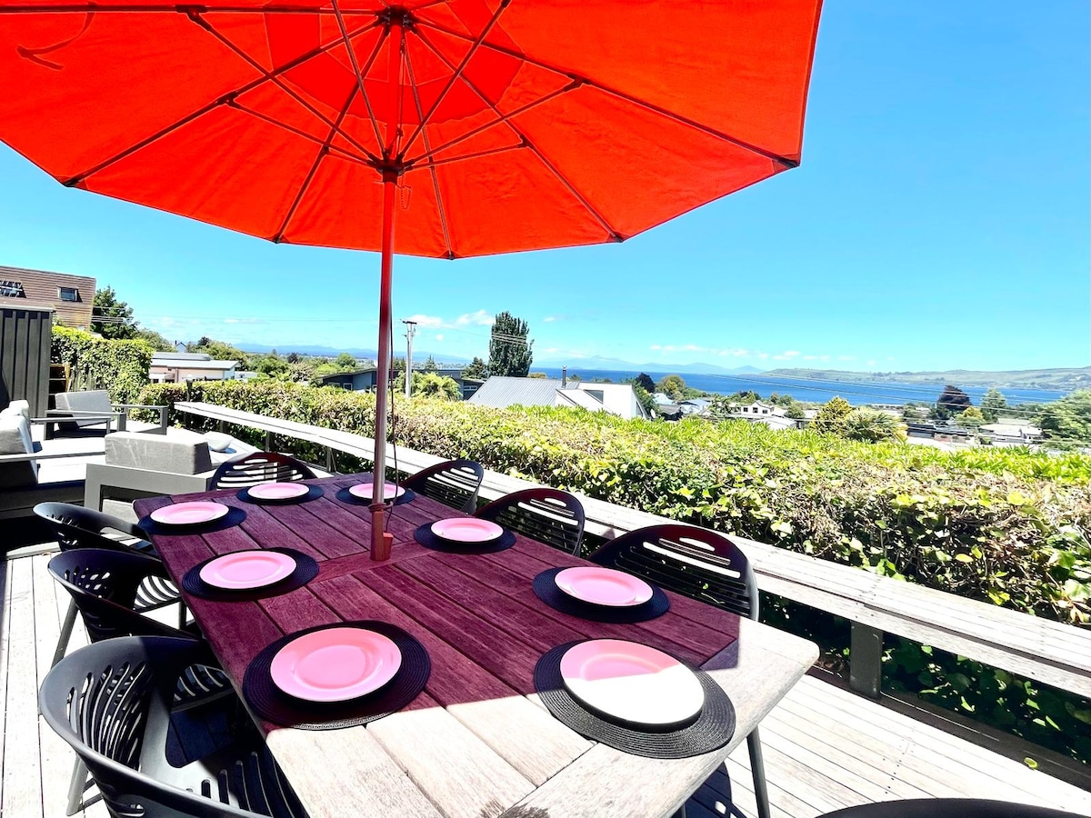 Élvezd a luxuságyakat és a tágas, nyitott életet. Öt percre a tótól, ahonnan gyönyörű kilátás nyílik a tóra és gyönyörű naplementék várnak. A tóparton tett 30 perces kellemes séta a csodás Taupo községig, amely butikokat, kávézókat, bárokat és éttermeket kínál. A háznak két nagy terasza van a nyári kikapcsolódáshoz, és két hőszivattyút a téli melegségért. A privát teraszon található egy merülőmedence, amelyet természetes termálvízzel tölthetsz meg, hogy egész évben élvezhesd.