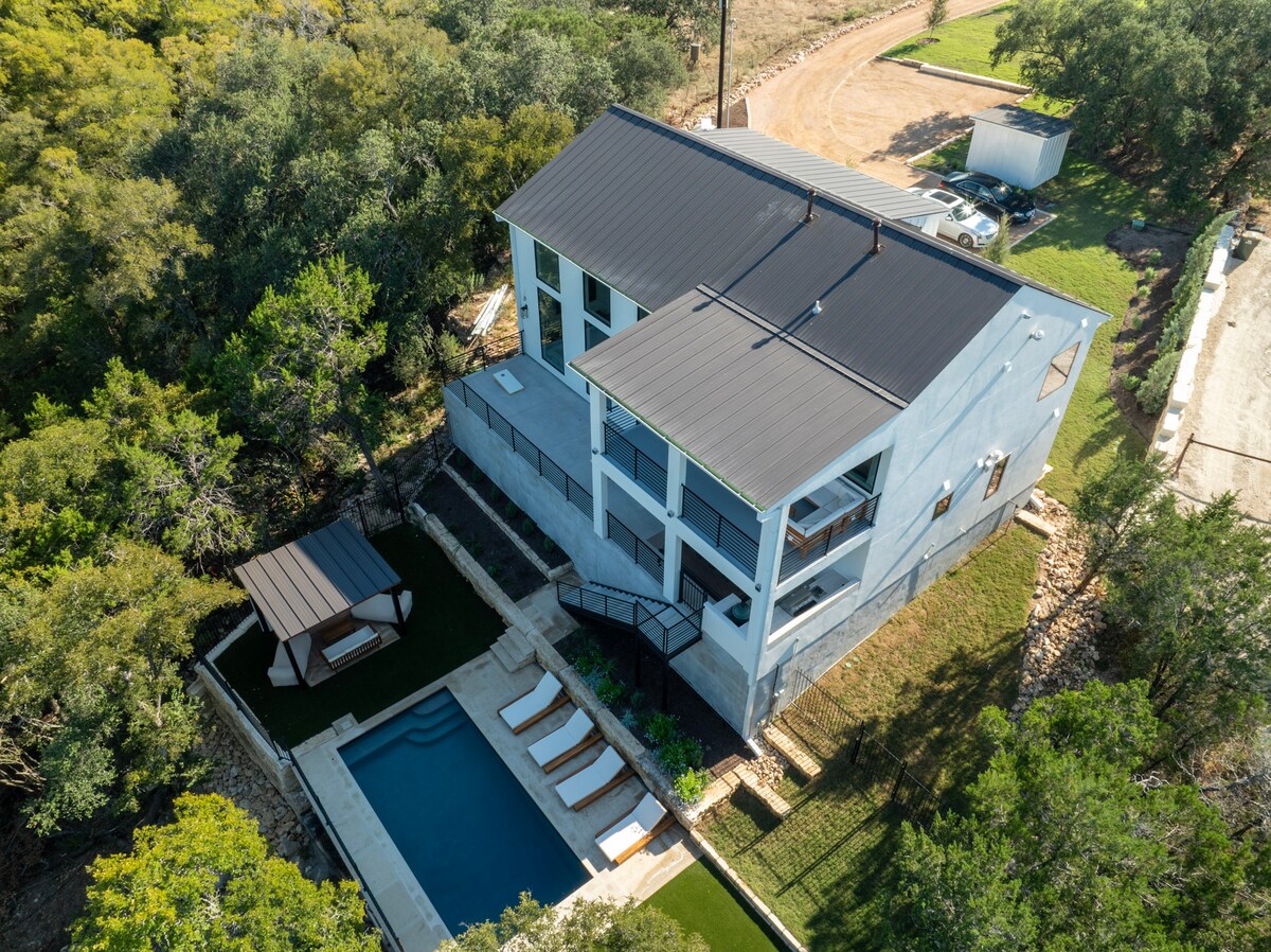 Üdvözlünk a tanyánkon. A Dripping Springsben, 180 hektáron elterülő Hideaway Hill Country egy pihentető, luxus modern otthon, minden kényelmi szolgáltatással. Század közepi modern stílusban díszítve, gyönyörűen restaurált antik darabokkal. Ez az otthon a nyugati fekvésű, festői, 180 fokos kilátás köré épült, amely a beltéri és kültéri terekben látható. Pihenj a nagy, kényelmes kanapén, a luxus pezsgőfürdőben, vagy a több fedett veranda és pavilon egyikén, és élvezd a gyönyörű naplementét.