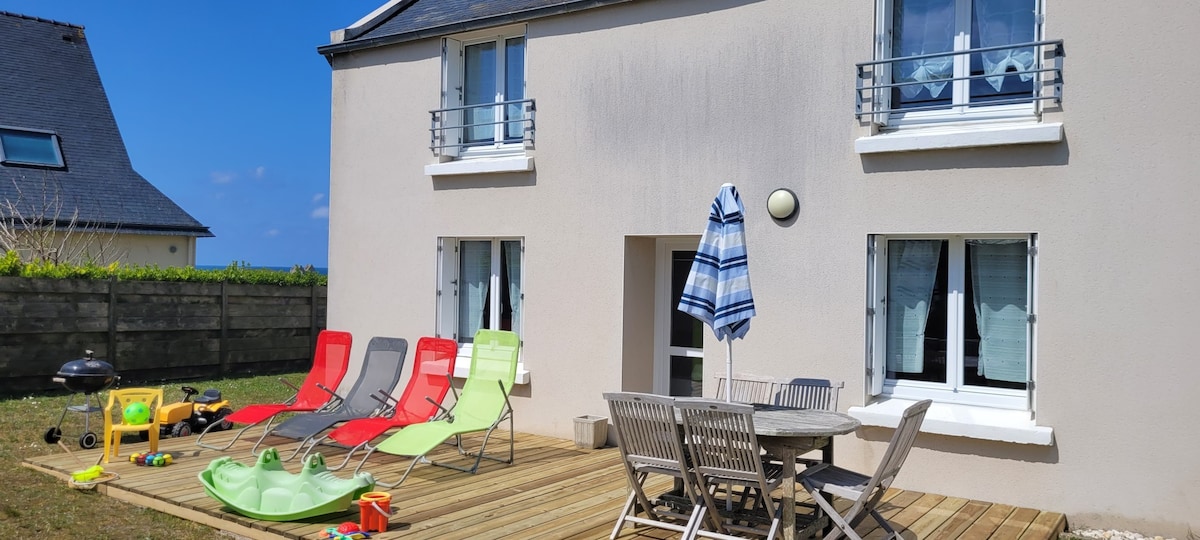 Tengerparti ház, 50 m-re a GR34, közelében található a strandok Iroise ország, a tengeri kikötő és szemben a Ponant szigetek. Üzletek, bárok és éttermek a közelben. A házban egy felszerelt konyha, nappali, két hálószoba, zuhanyzó és külön WC található. Kert és teraszok kerti bútorokkal, grill. Az ágyak be vannak ágyazva érkezéskor, törölköző biztosított.
