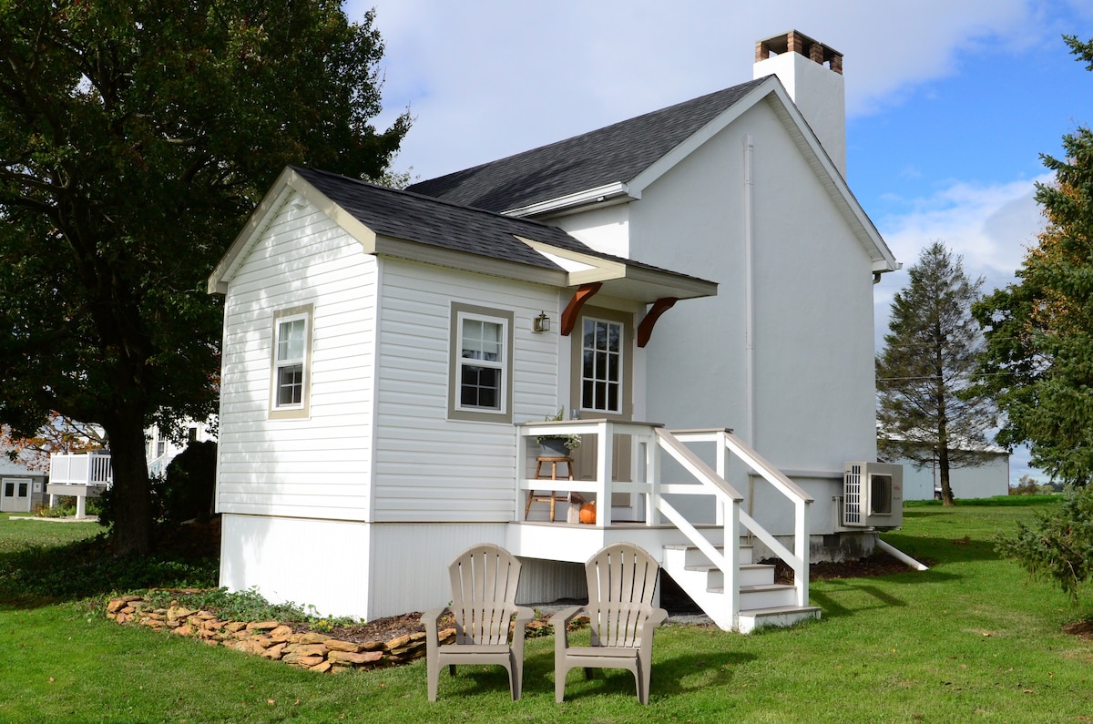 Unwind in this peaceful, rural cottage with beautiful views of the valley in the historic town of Lititz, PA. The cottage is located on the property of an 1860's Farmhouse with lots of character and charm. In the spring and summer enjoy the beautiful flower gardens on the property. Enjoy relaxing on the covered patio and take in the views of the surrounding farmland. A short 5 minute drive will take you downtown for shopping, restaurants, Wilbur Chocolate, Lititz Springs Park and more!